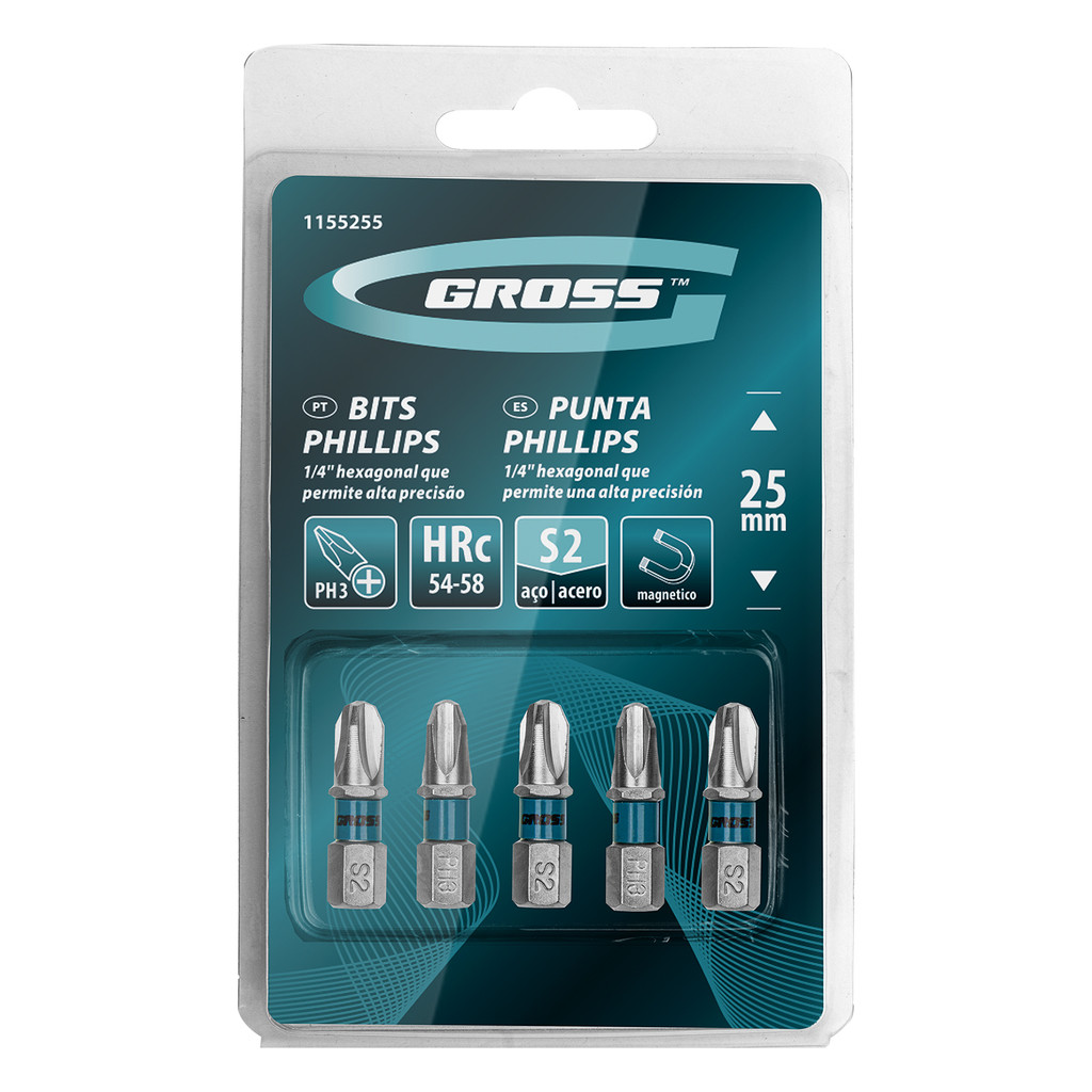 BITS PHILLIPS PH3, ACO CROMO MOLIBDENIO, 25MM, 5PCS // GROSS