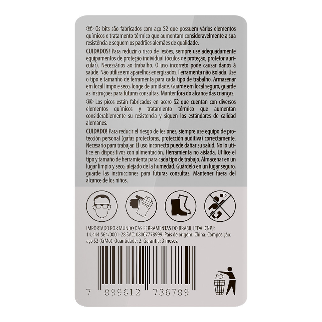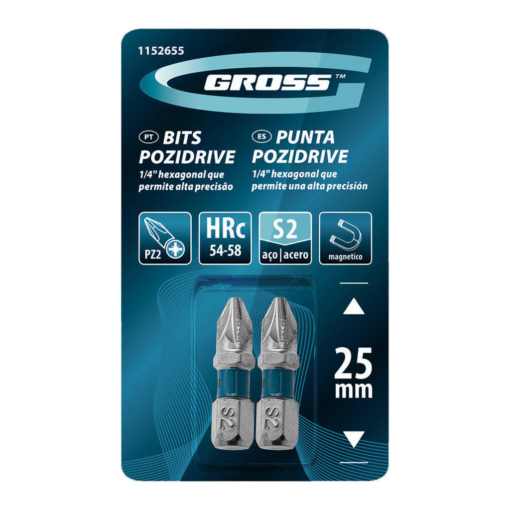 BITS POZIDRIV PZ2, ACO CROMO MOLIBDENIO, 25MM, 2PCS // GROSS
