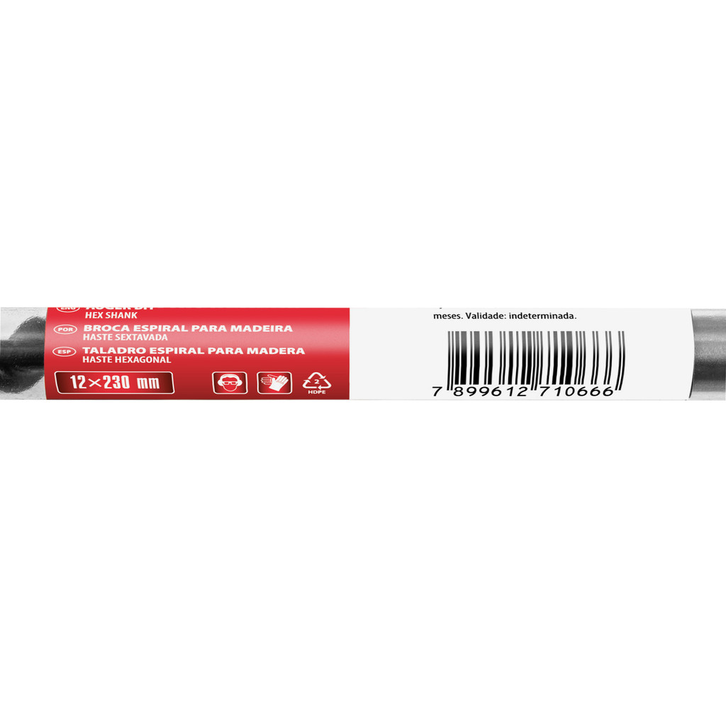 BROCA ESPIRAL PARA MADEIRA, 12 X 230MM, HASTE SEXTAVADA, 1PC // MTX