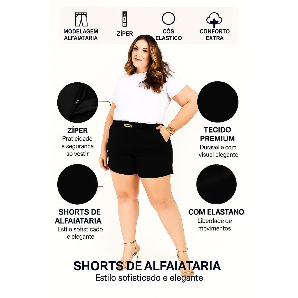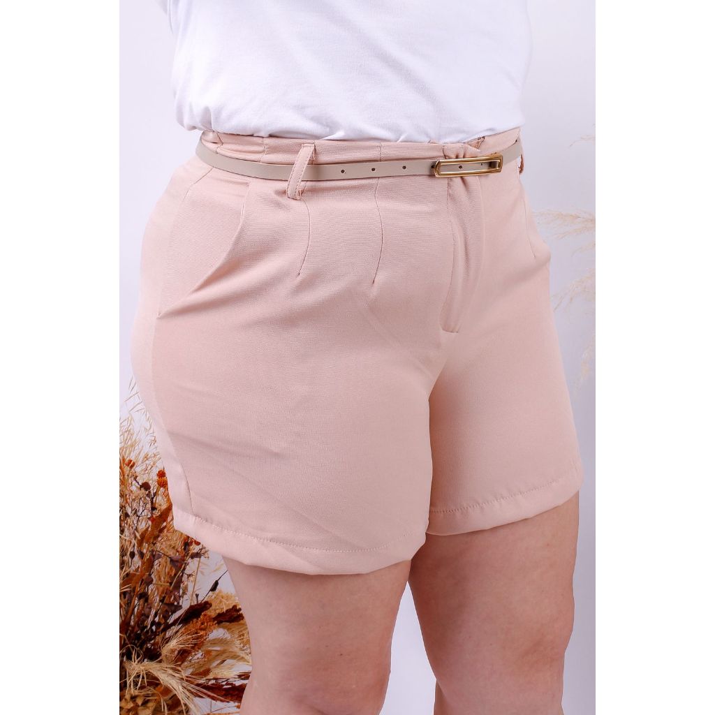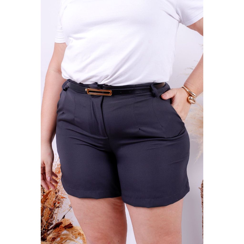 Kit 2 Short Alfaiataria Premium Plus Size Com Bolso e Cinto de Brinde Elegante Shorts Moda Feminina Plus Verao