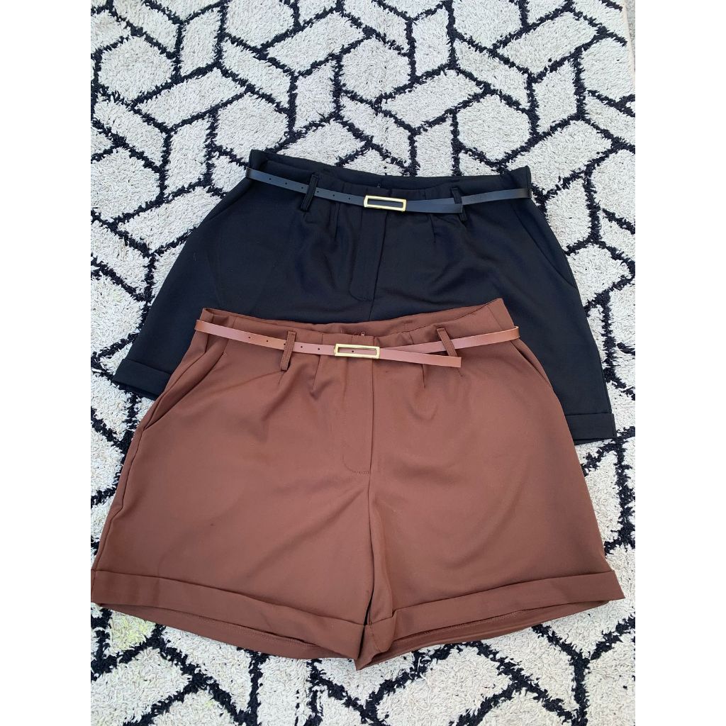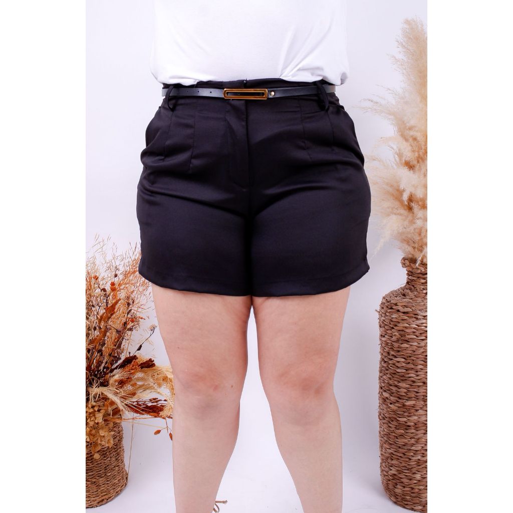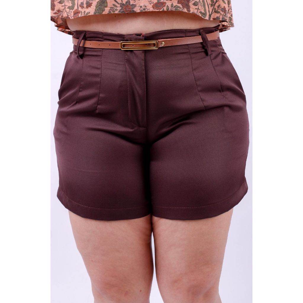 Short Plus De Alfaiataria Premium Com Bolso e Cinto Elegante De Brinde Shorts Moda Feminina Plus