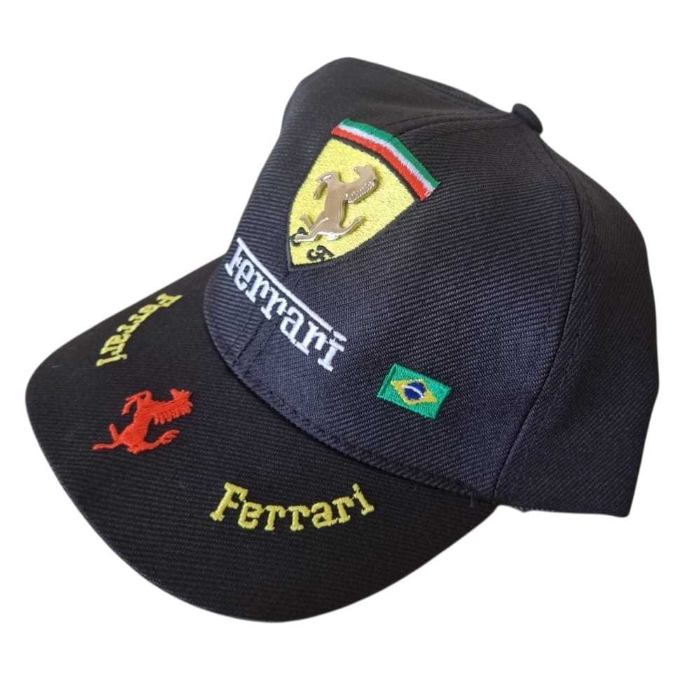 Boné Infantil Ferrari Bordado Aba Curva Ajustável - Pronta Entrega