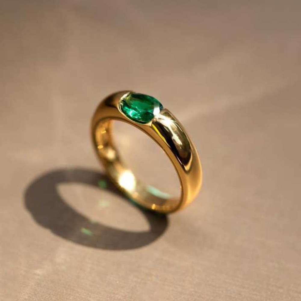 Estilo Vintage Rubi Esmeralda Zircão Cristal Ouro Titânio Aço Feminino Masculino Moda Jóias Noivado Anéis De Casamento
