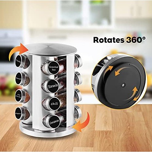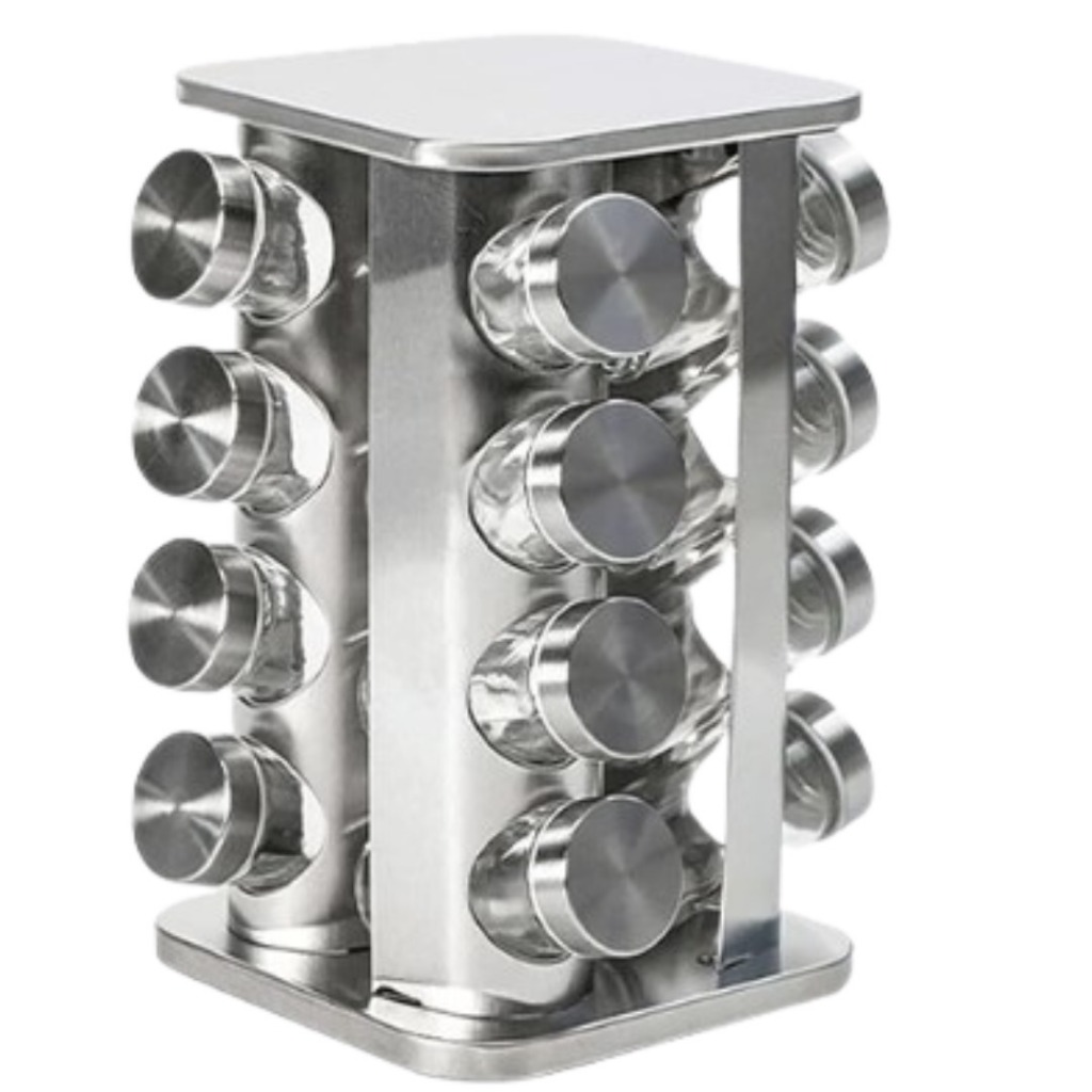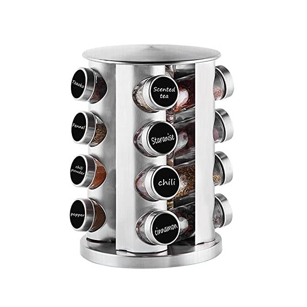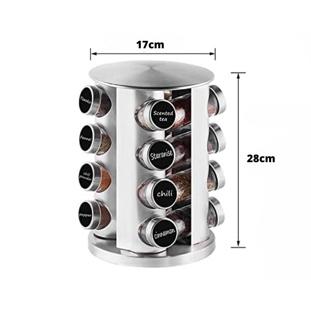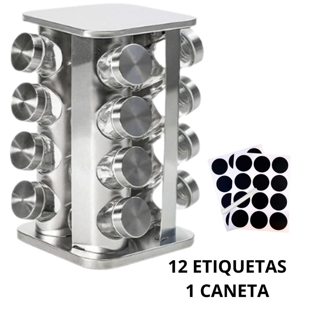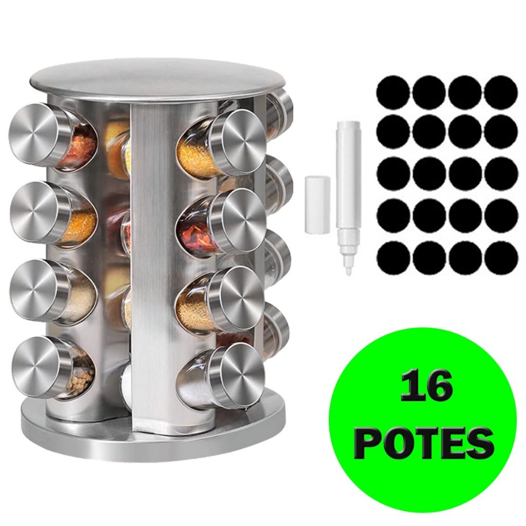 Porta Tempero 16 Potes Redondo Condimento Inox Suporte Giratório cozinha Decoração ETIQUETA CANETA