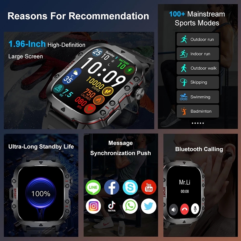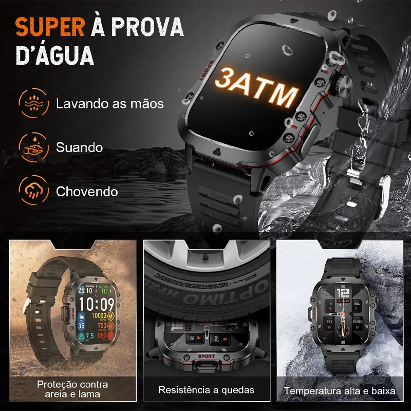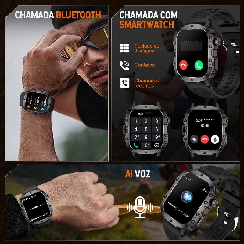 2025 novo original relógio inteligente masculino ao ar livre relógio de aço inoxidável preto impermeável
