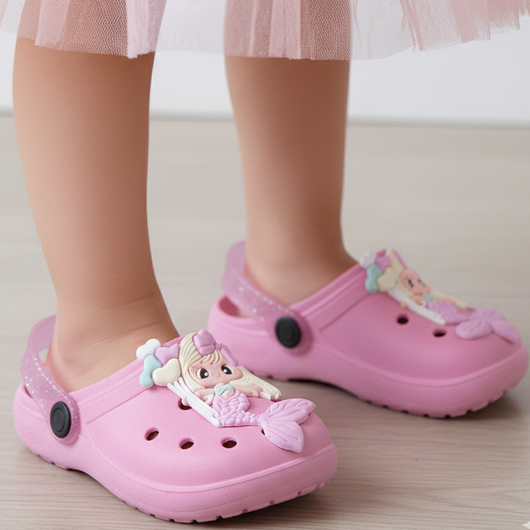 Sandália Infantil Sereia Menina Papete Feminina Macia e Confortável Super Fácil De Limpar