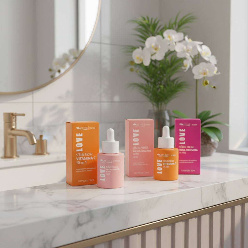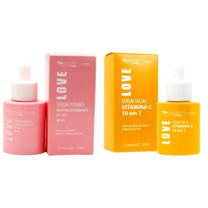 Sérum Max Love Vitamina C 10 em 1 Sem Óleo - Rosa Mosqueta e Primer Antibrilho