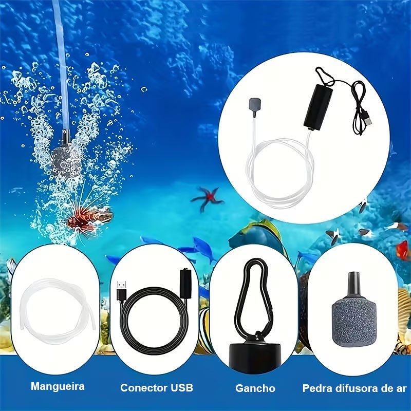 Oxigenador Portátil USB Bomba de Ar Silenciosa para Aquário Pescaria Transporte de Peixes