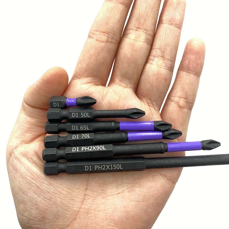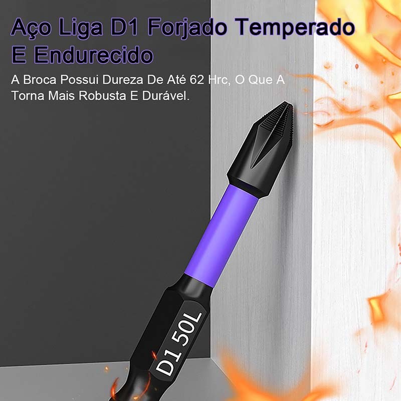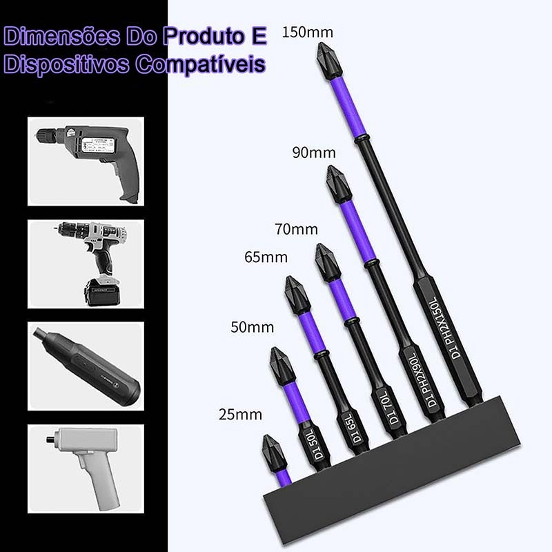 Kit 6 Bits Phillips PH2 Magnéticos Antiderrapantes Aço S2 para Parafusadeira 1/4