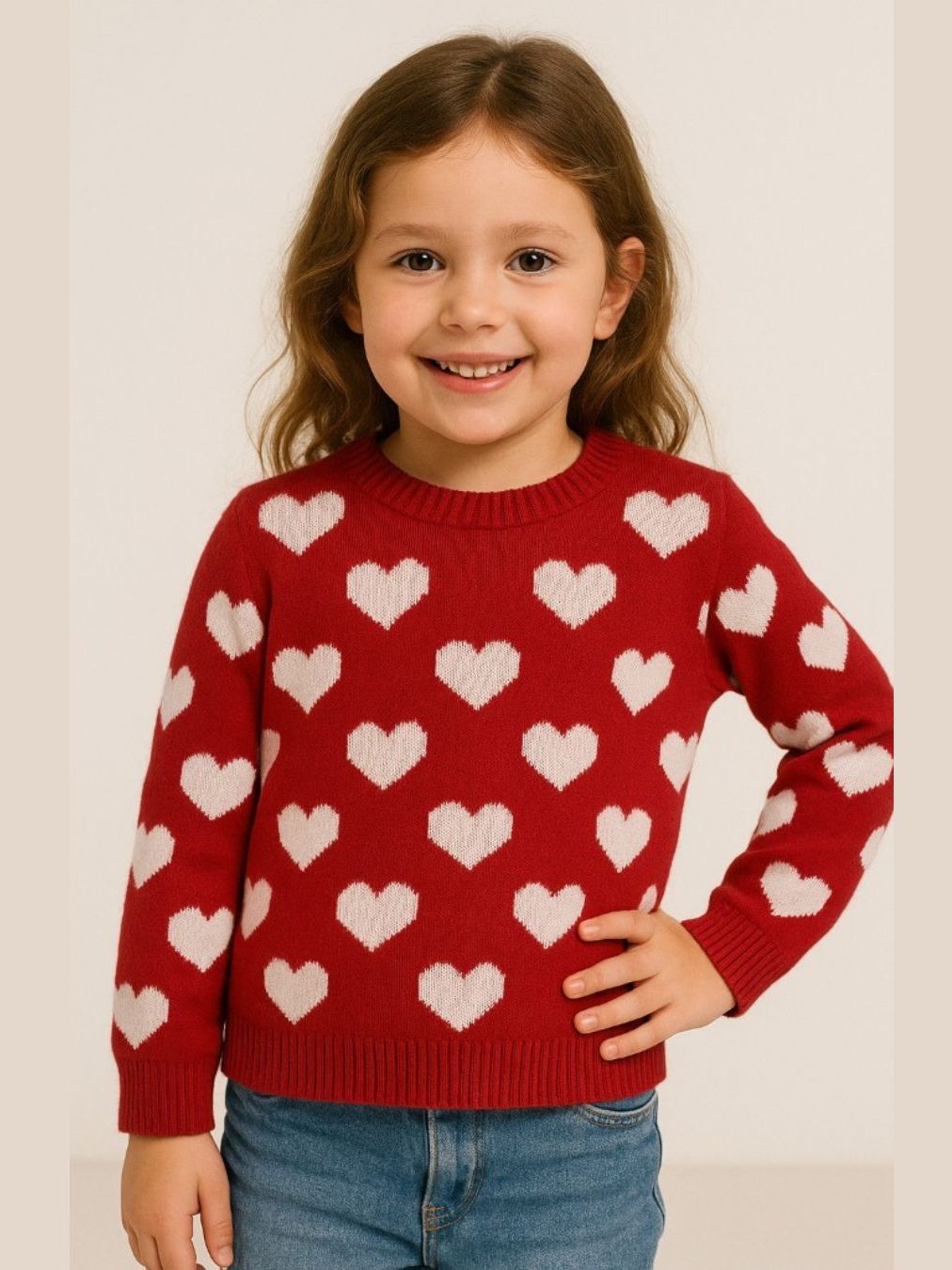 Blusa Suéter Tricot Infantil Juvenil Premium Coração Gola Redonda Manga Longa Meia Estação Inverno