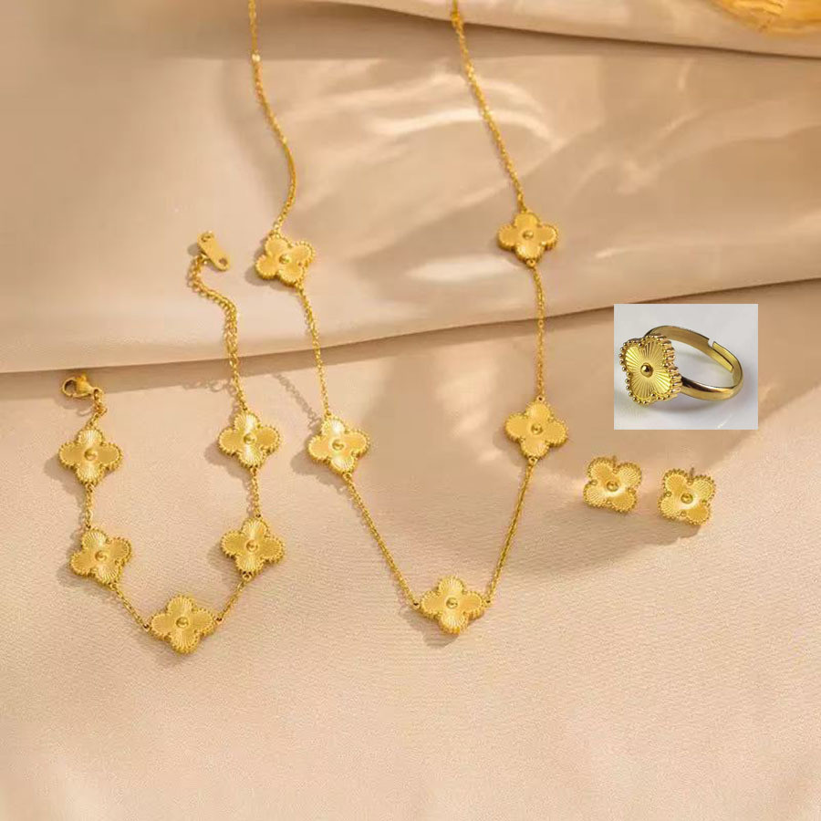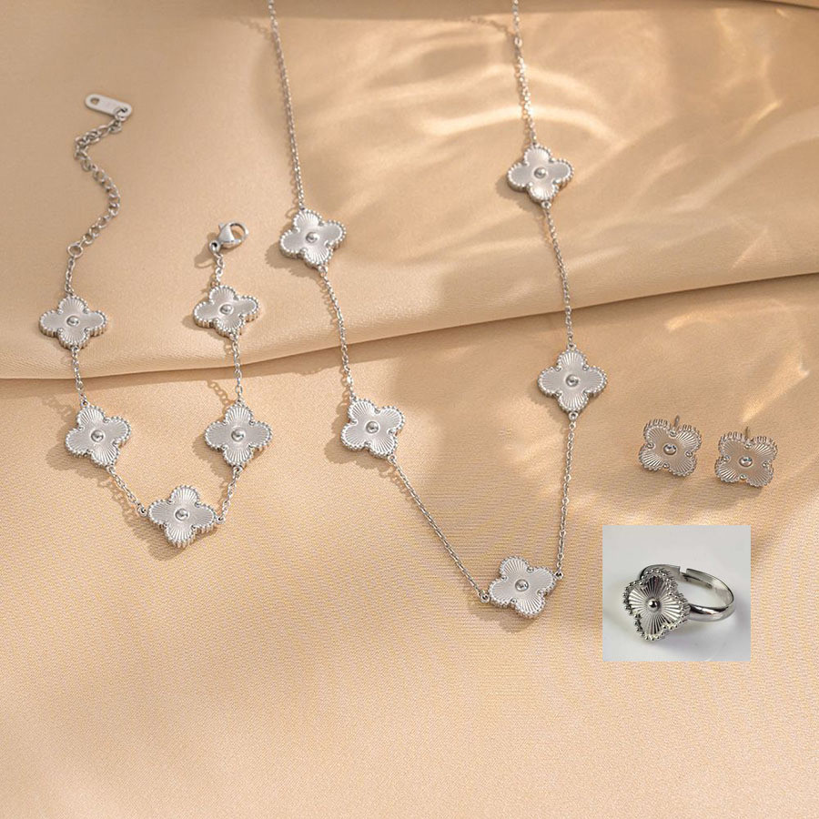 Conjunto Colar + Brinco Anel E Pulseira Formato Flor Formato Reforçado Em Aço Inox