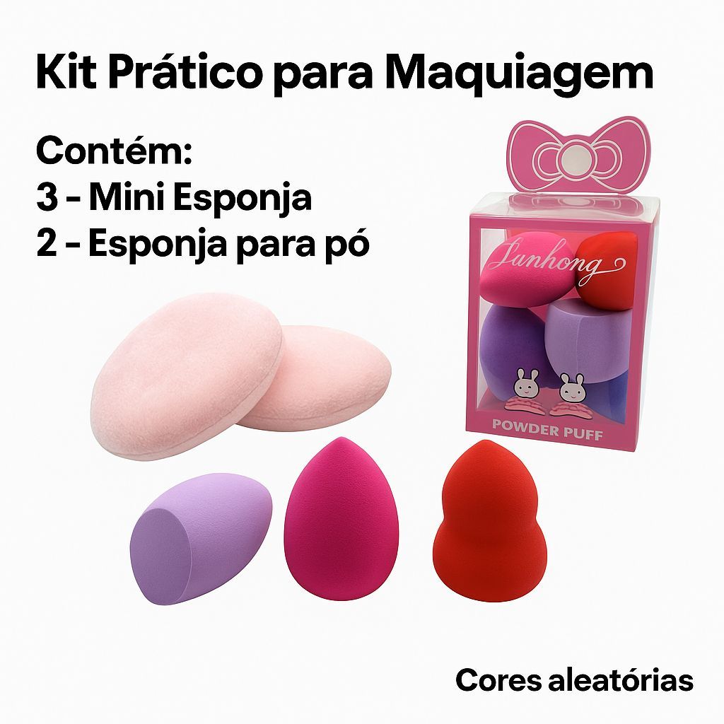 Kit Esponjas para Maquiagens Pratico 5pçs Esponja para pó + Mini Esponjas