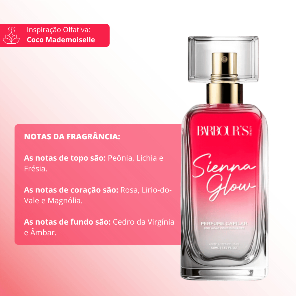 Perfume Capilar Sienna Glow Barbour's Beauty 50ml Fragrância Floral Finalizador Termoativo Leave-in