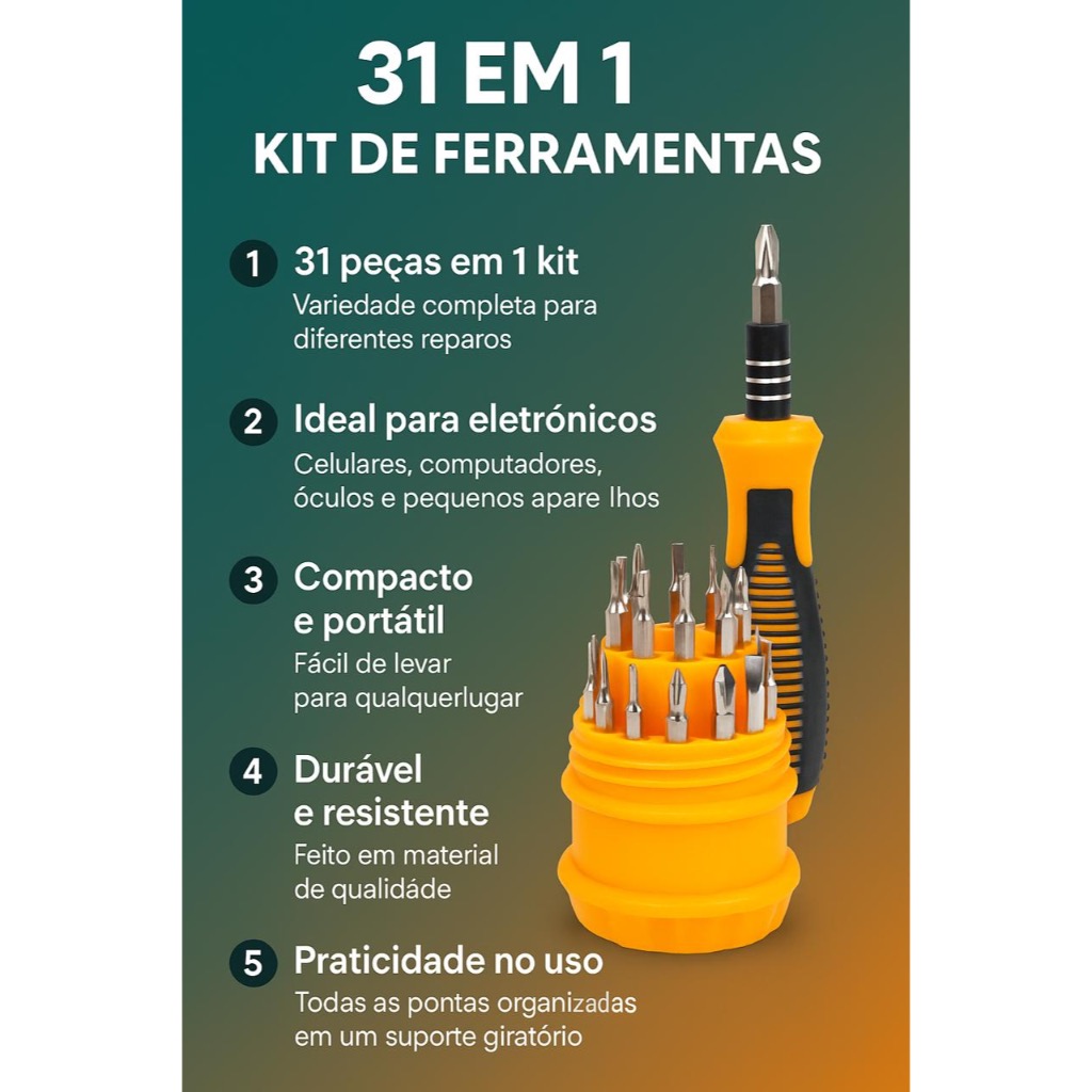 Chaves de Precisão. Kit de Ferramentas 31 em 1 ELECTROc SCREW DRIVER SET