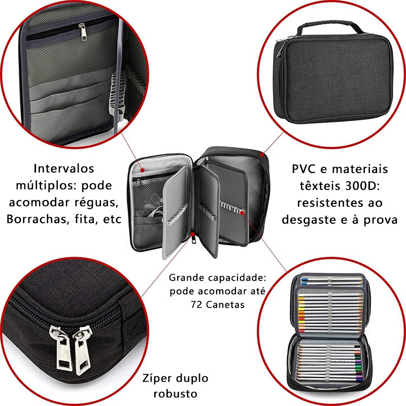 Estojo 72 Pens Escolar Box Nylon Com Alça Organizador Com Divisórias Zíper Infantil judy store