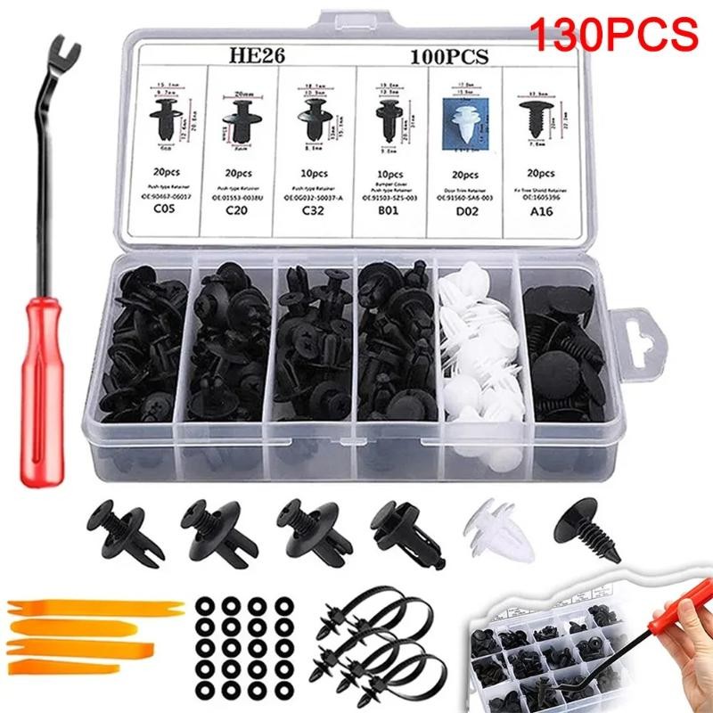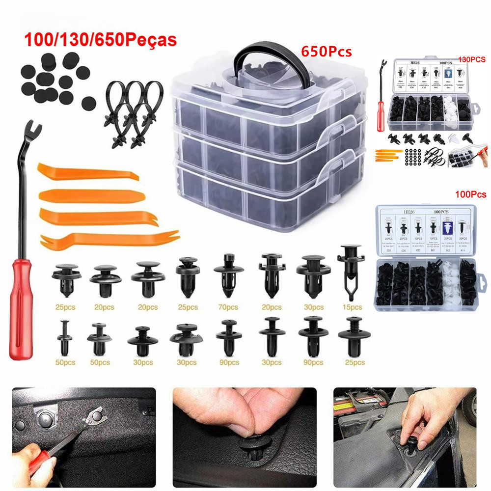 Kit 100/130/650 Peças Prendedor Híbrido Clips Fixação Push-In Pinos Bloqueio, Presilhas Universais para Autopeças