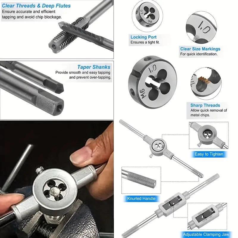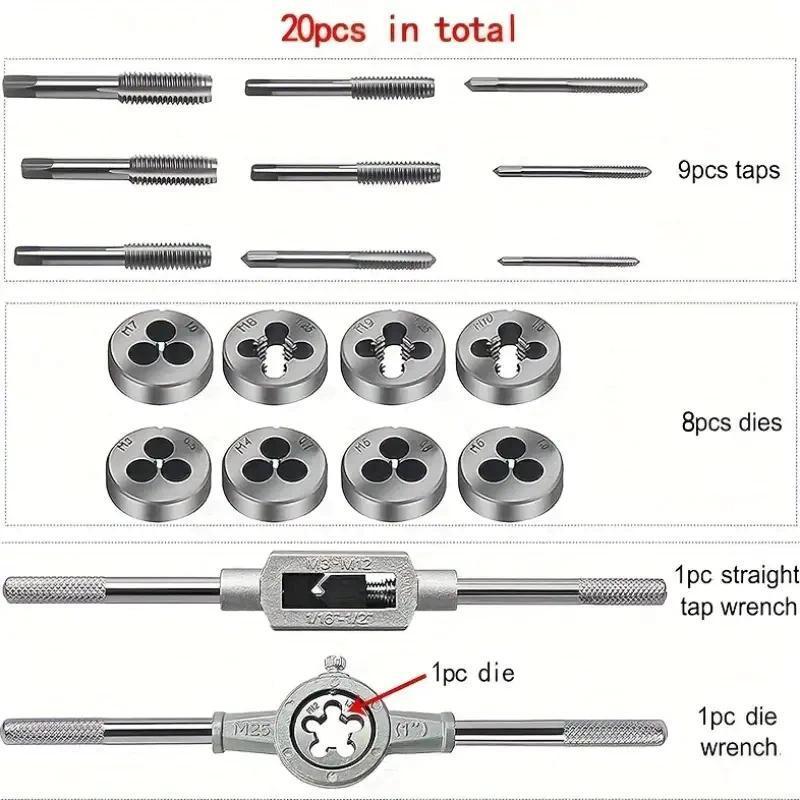 Kit Macho E Tarracha Jogo 8 / 20 Peças Para Aço Madeira Alumínio