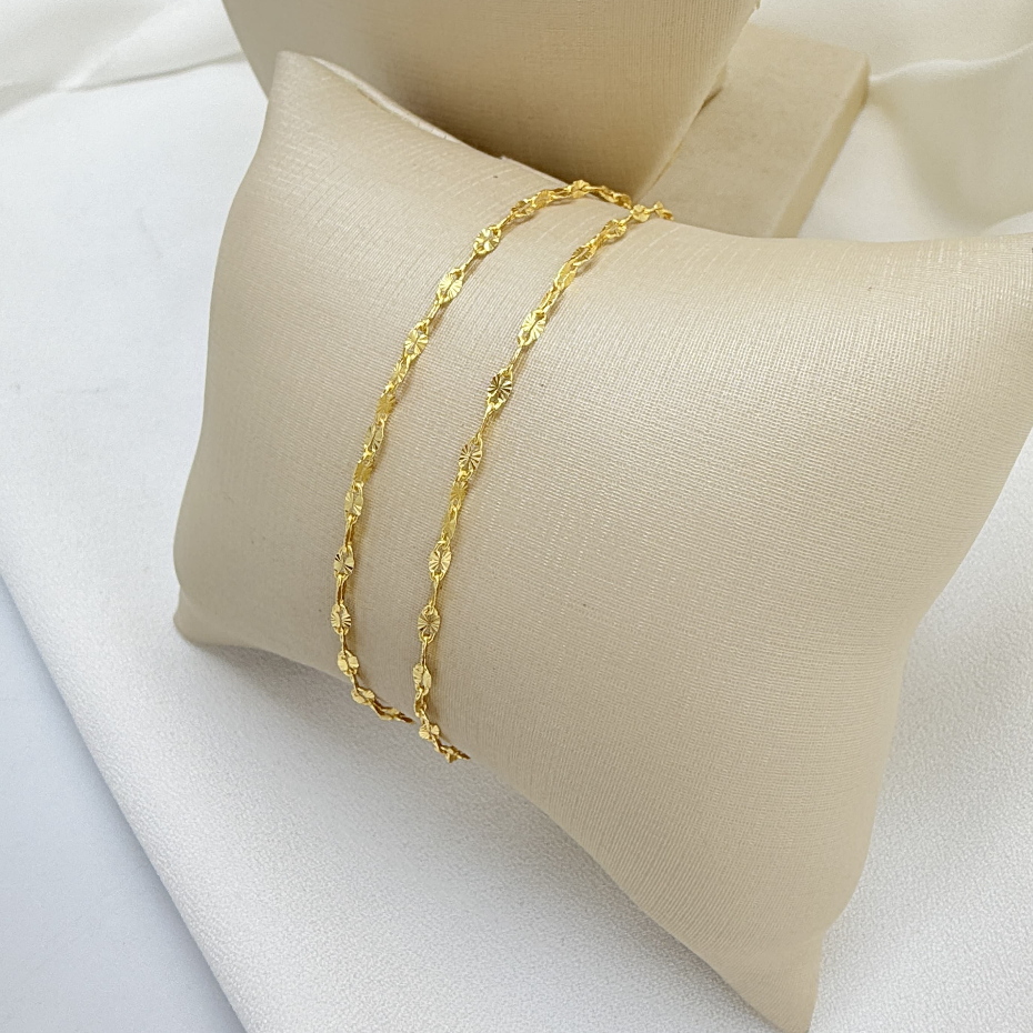 Kit Colar + pulseira de lantejoulas de camada dupla elegante em banhado e prata 925 e ouro 18k para mulheres