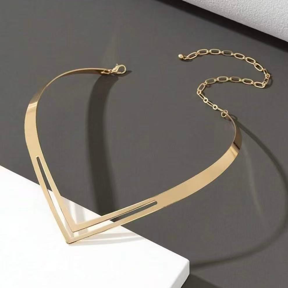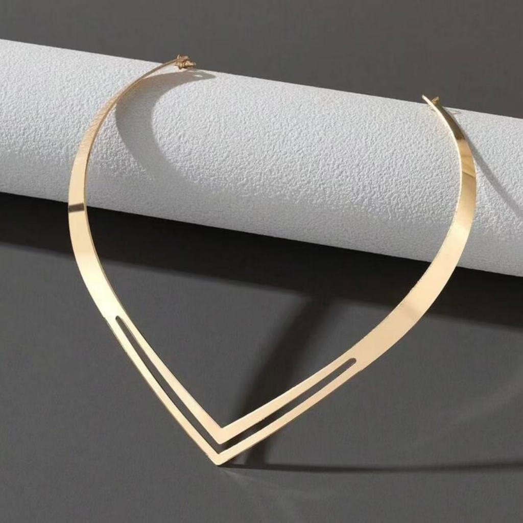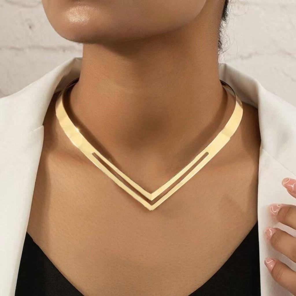 Colar Choker Feminino em Formato de V Duplo banhado a ouro 18k e prata 925