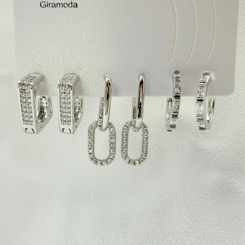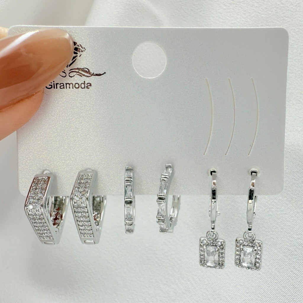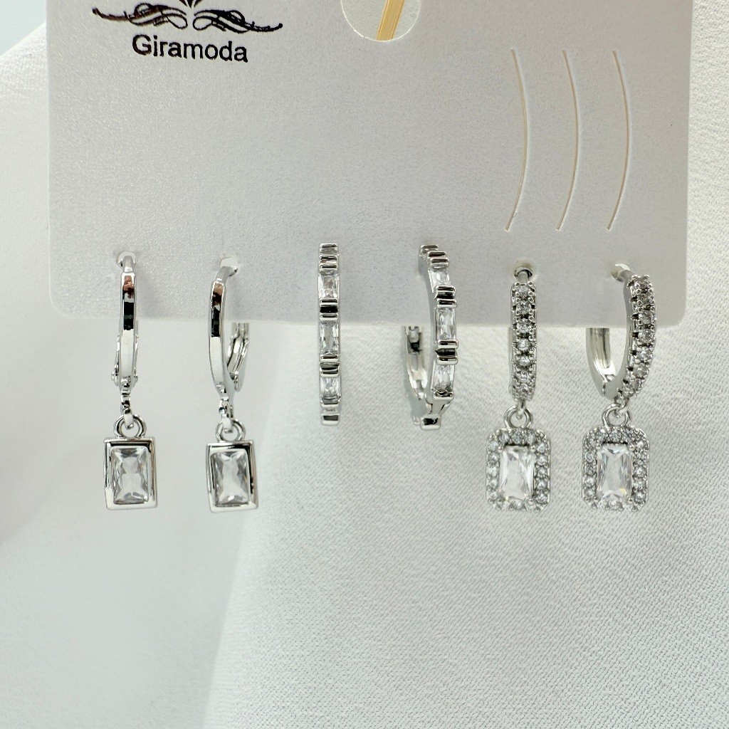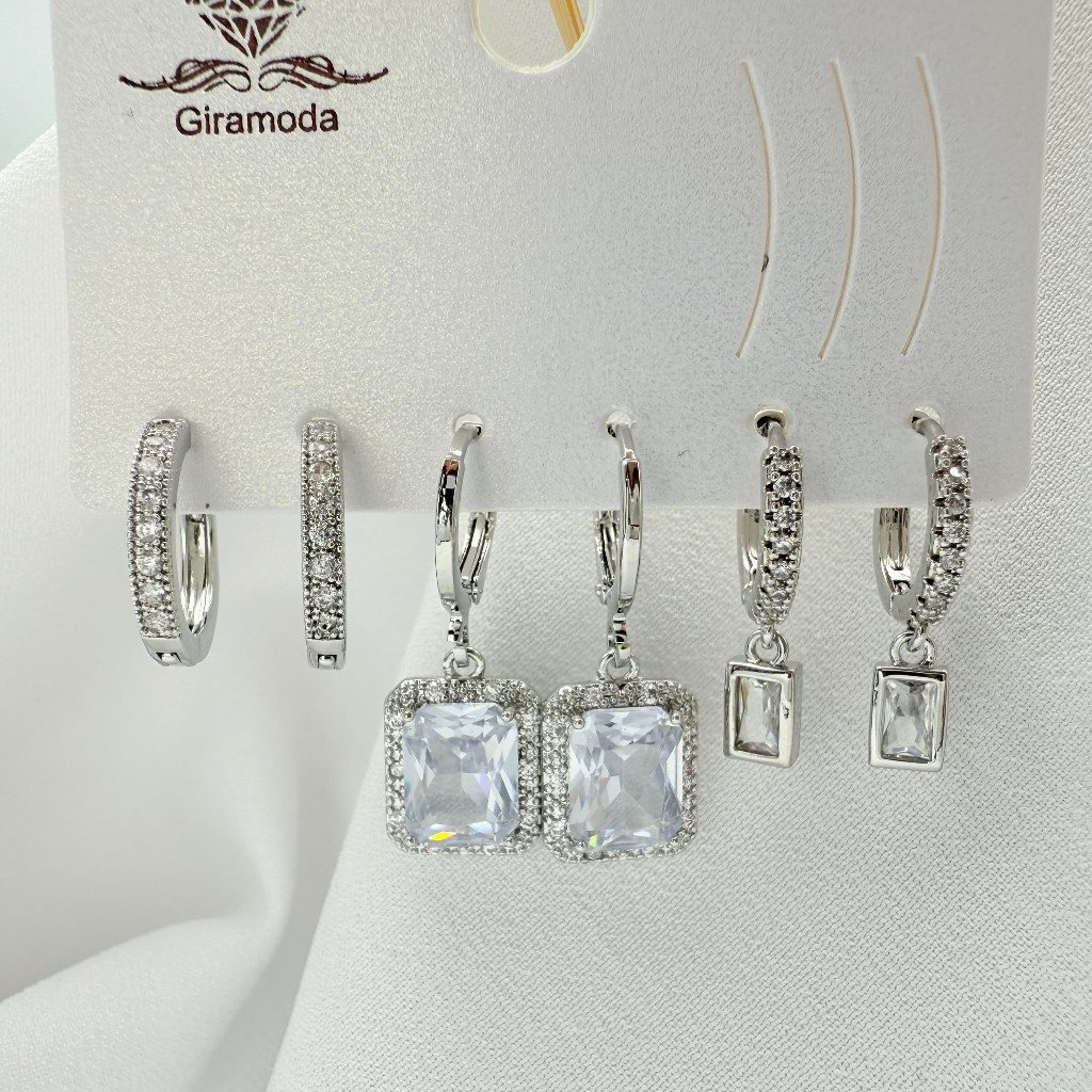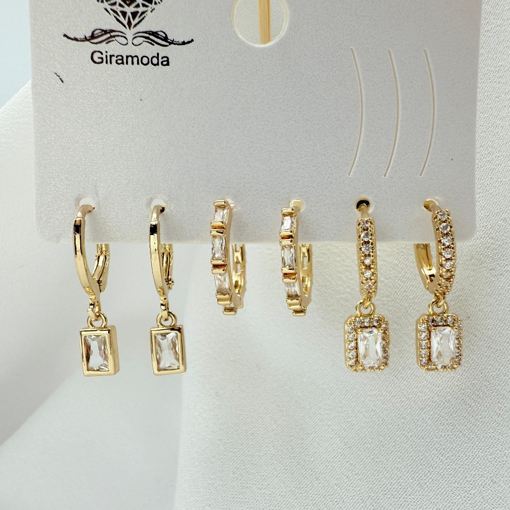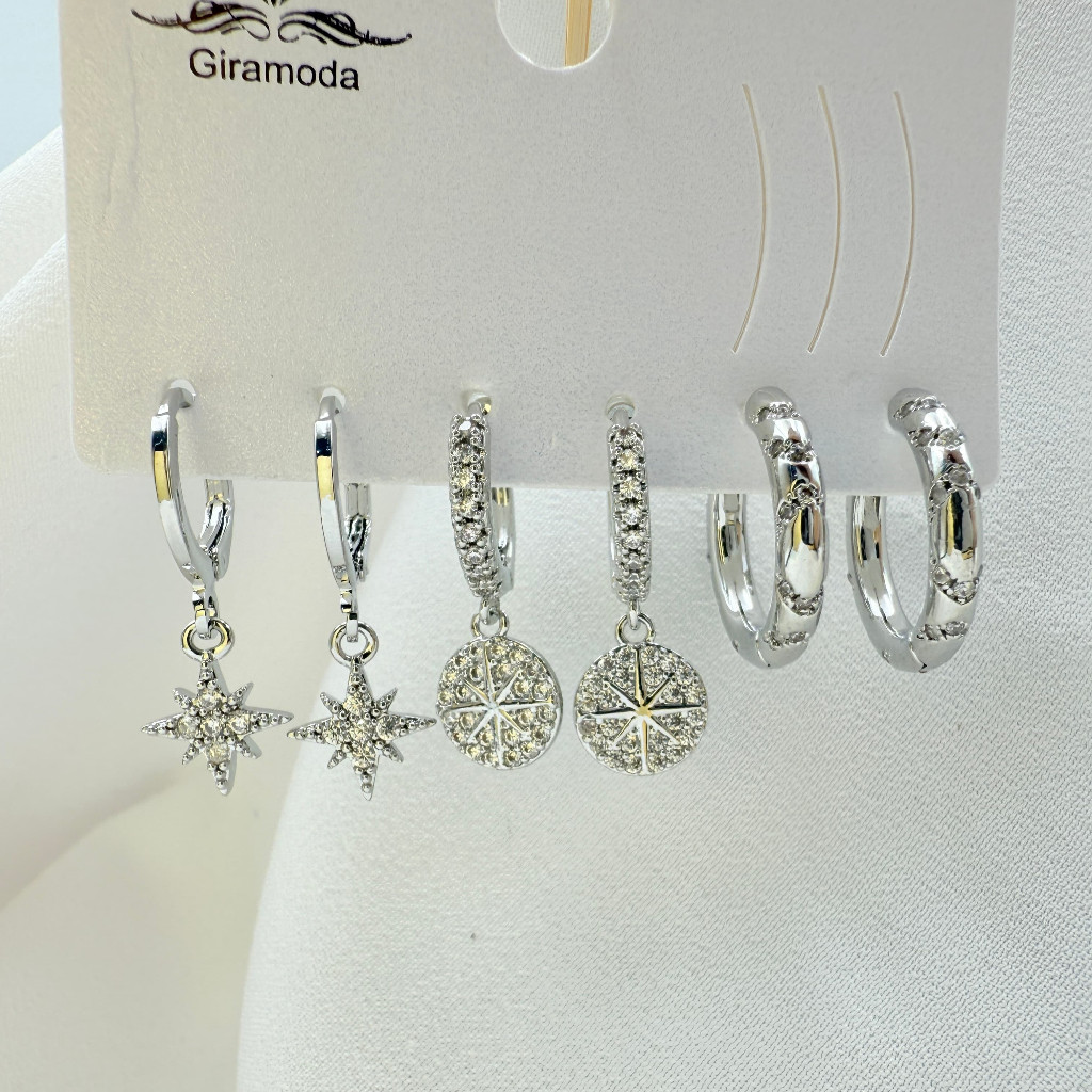 Kit 3 Pares de Brincos Femininos Banhados a Ouro 18K e Prata 925, Coração, Argola e Zircônias Coloridas