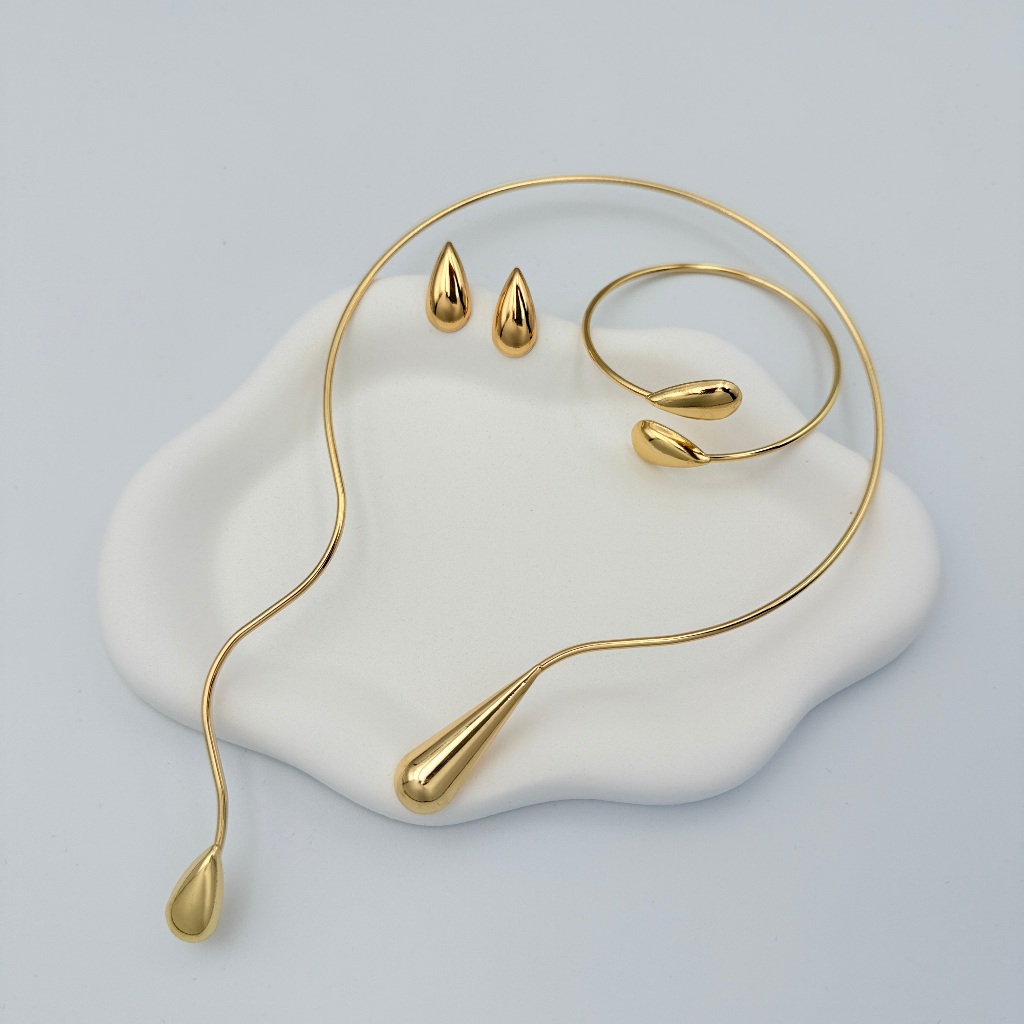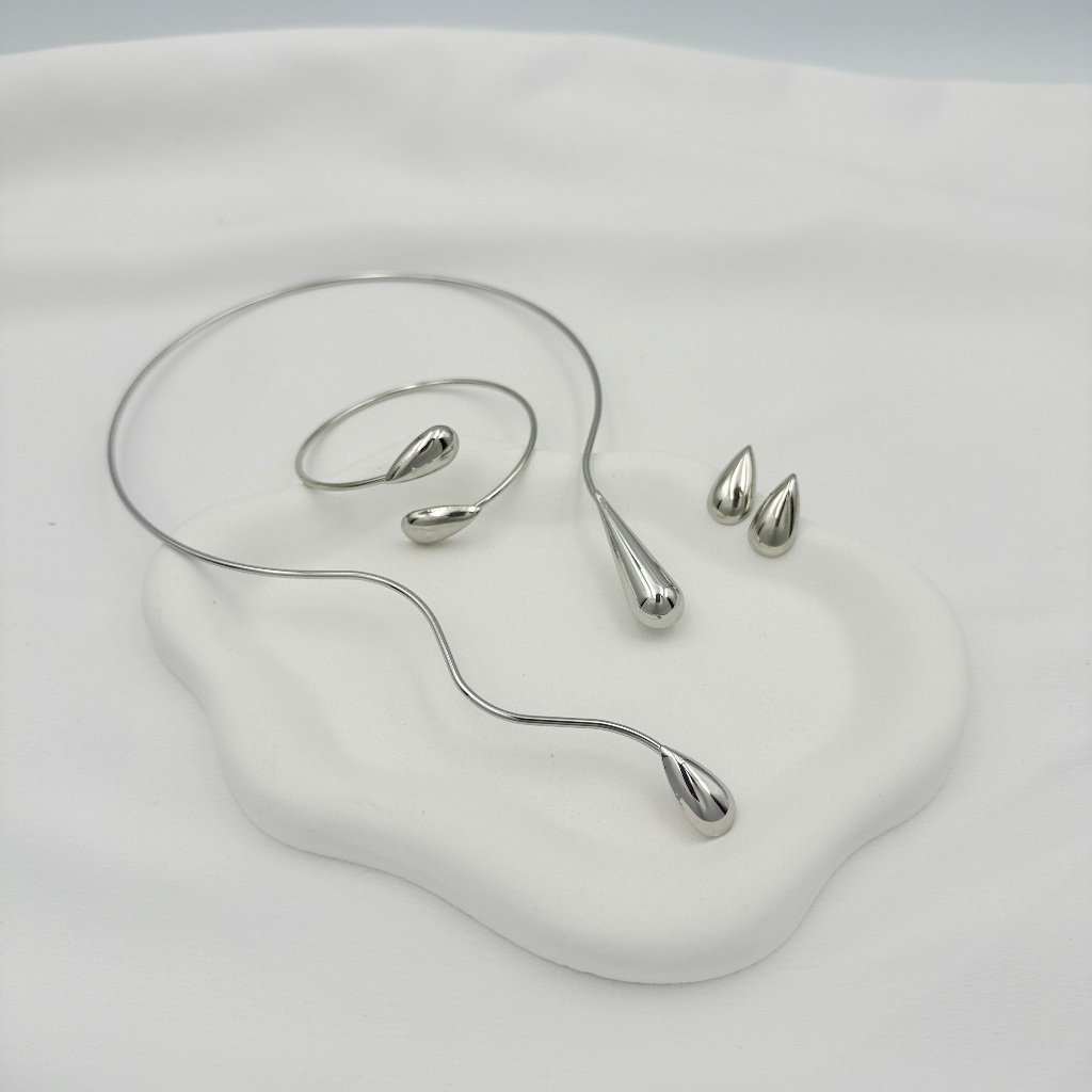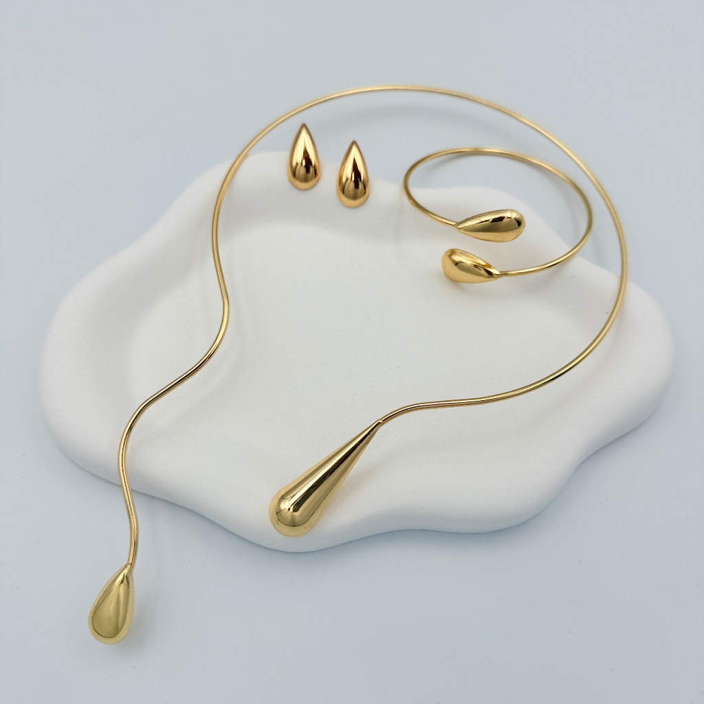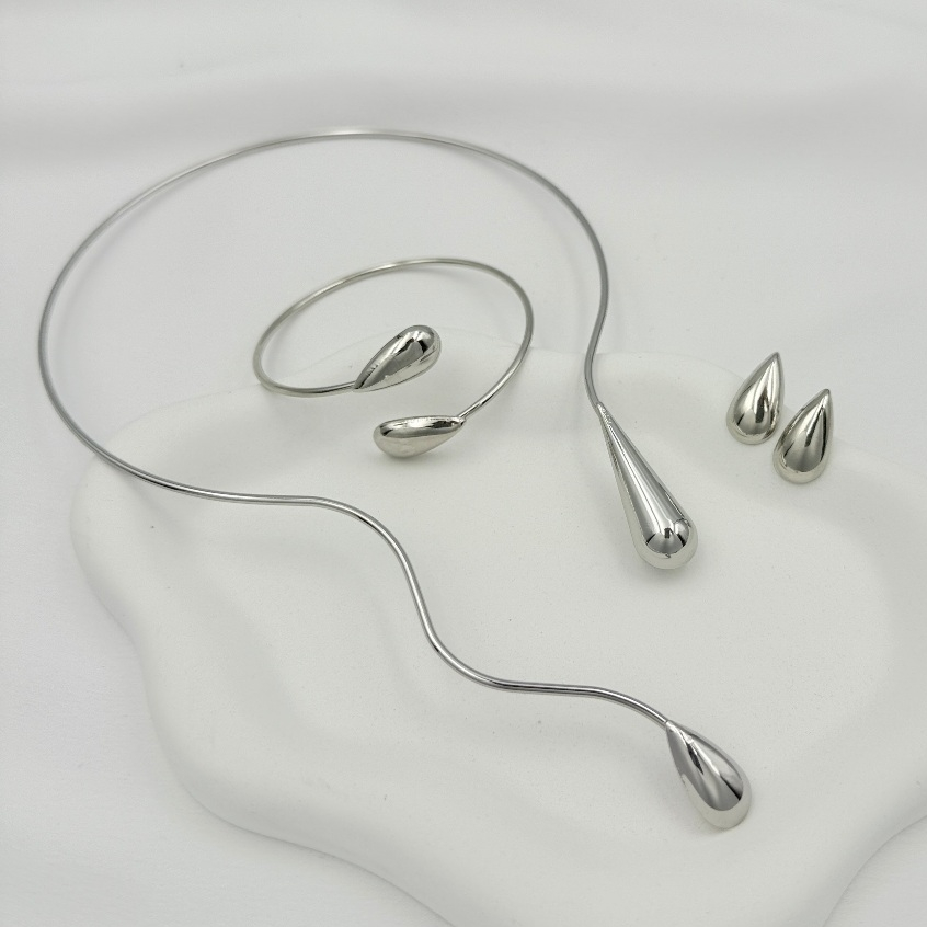 Kit Colar e Brincos Pulseira + com Linha Geométrica da Moda e Formato de Gota d''Água de Colarinho Aberto