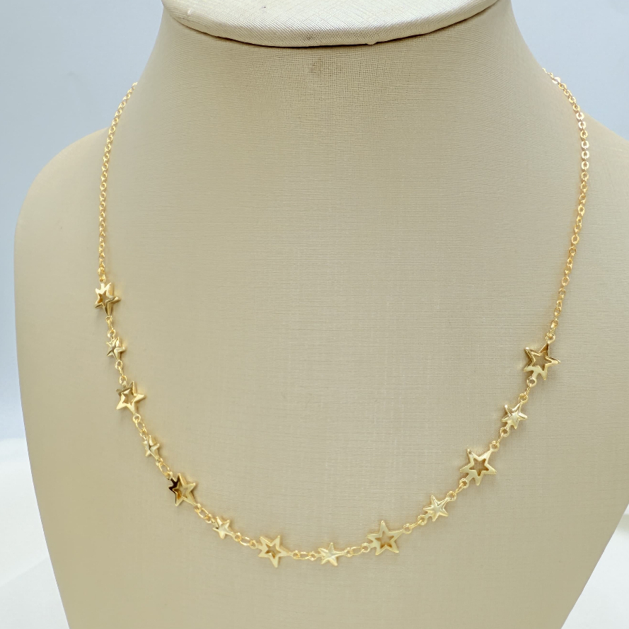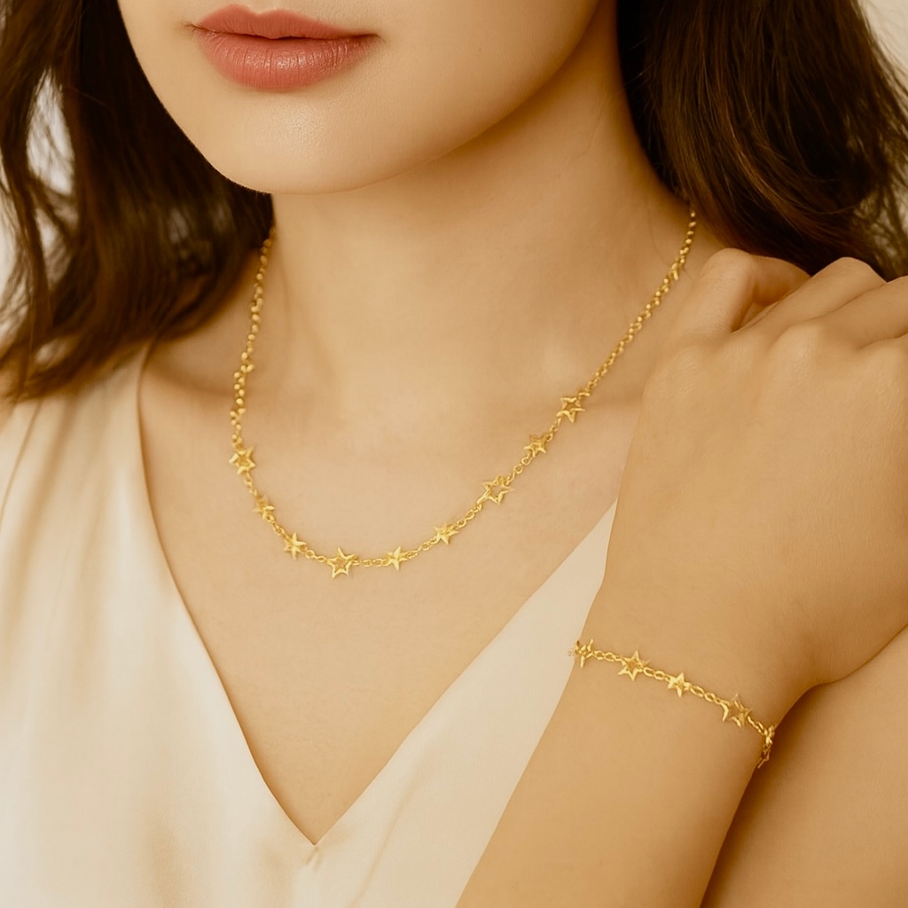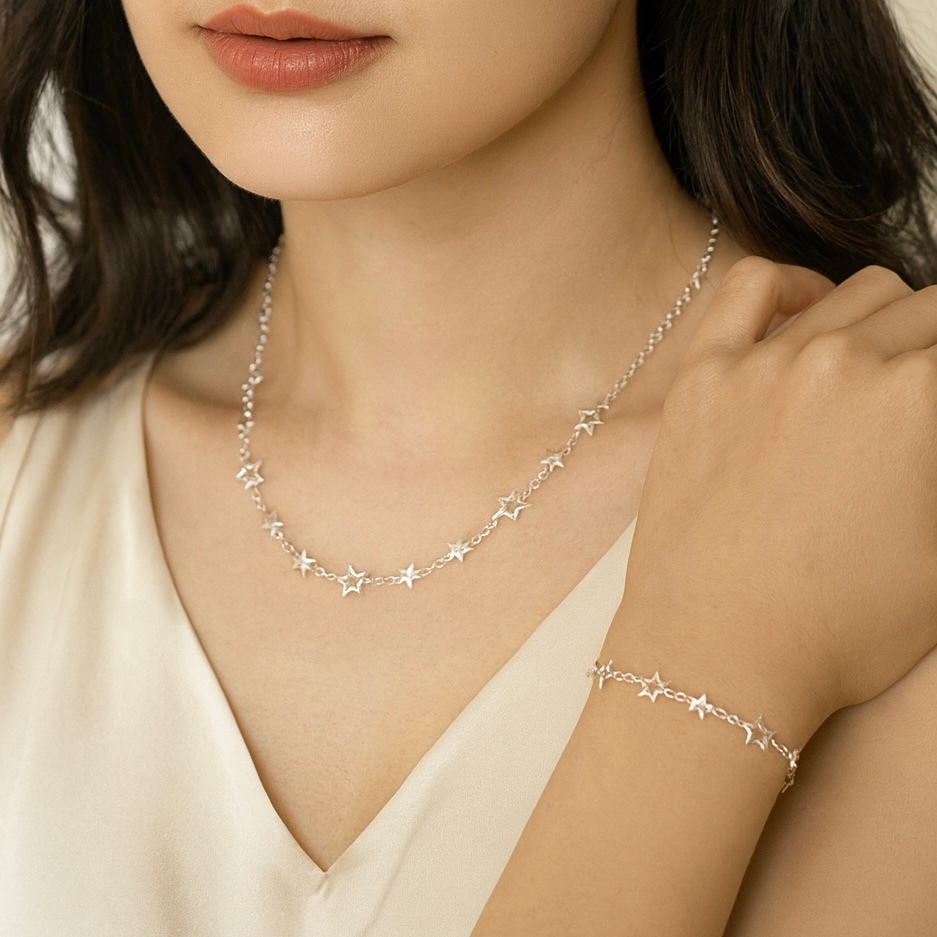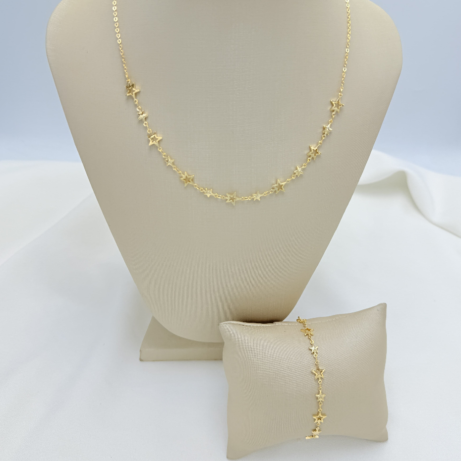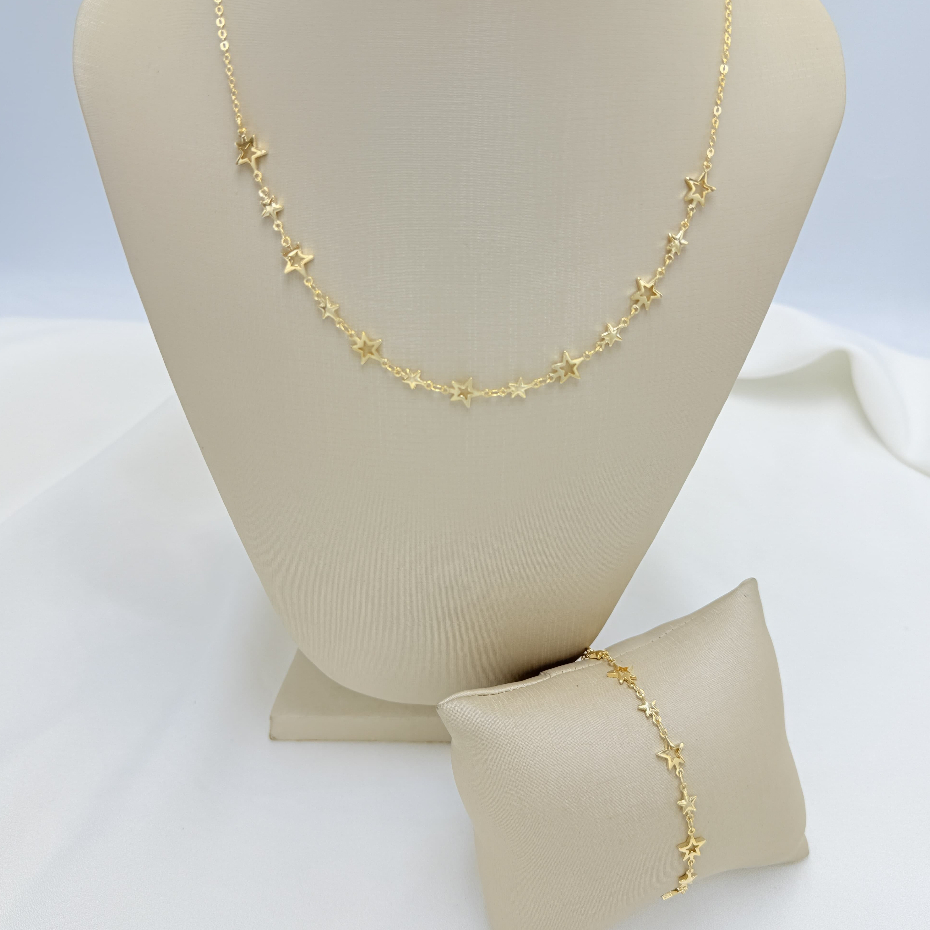 Kit colar + pulseira de estrela feminino elegante e versátil em banhado e ouro 18k a prata 925