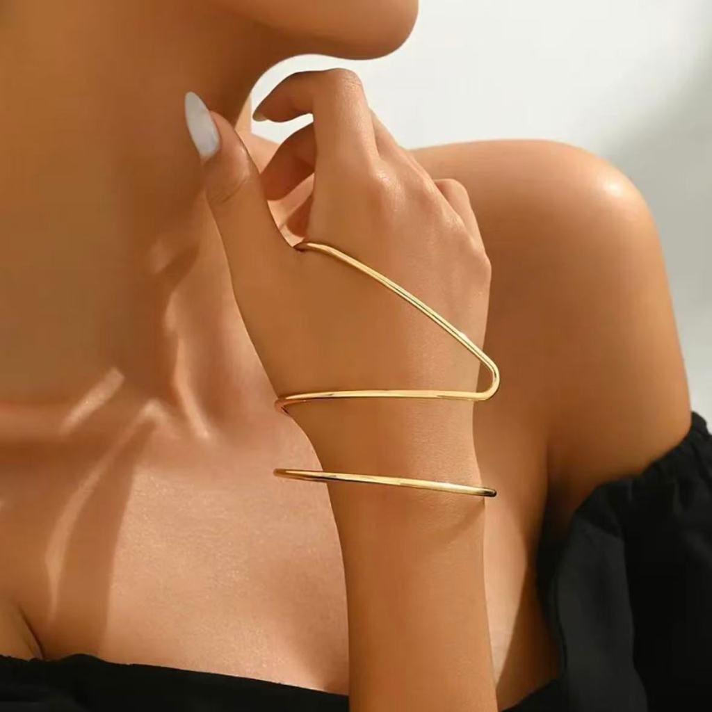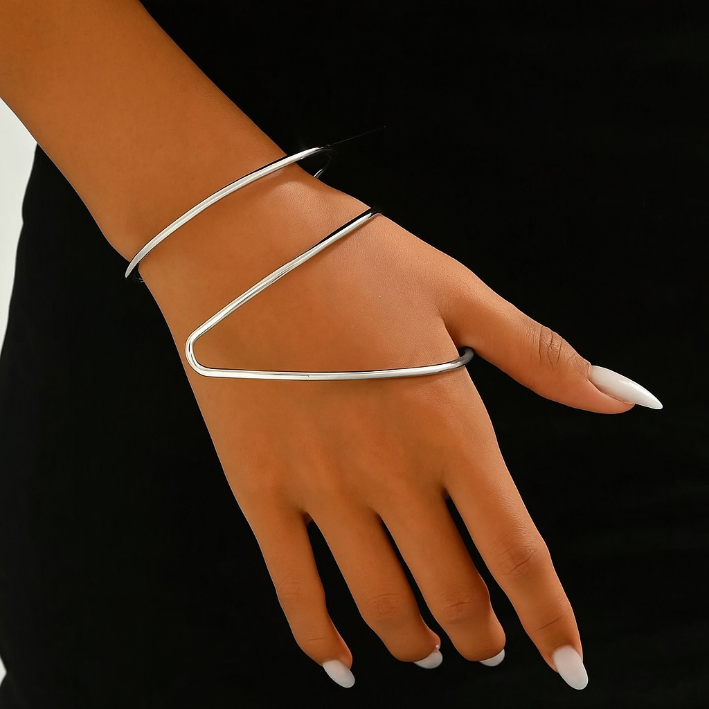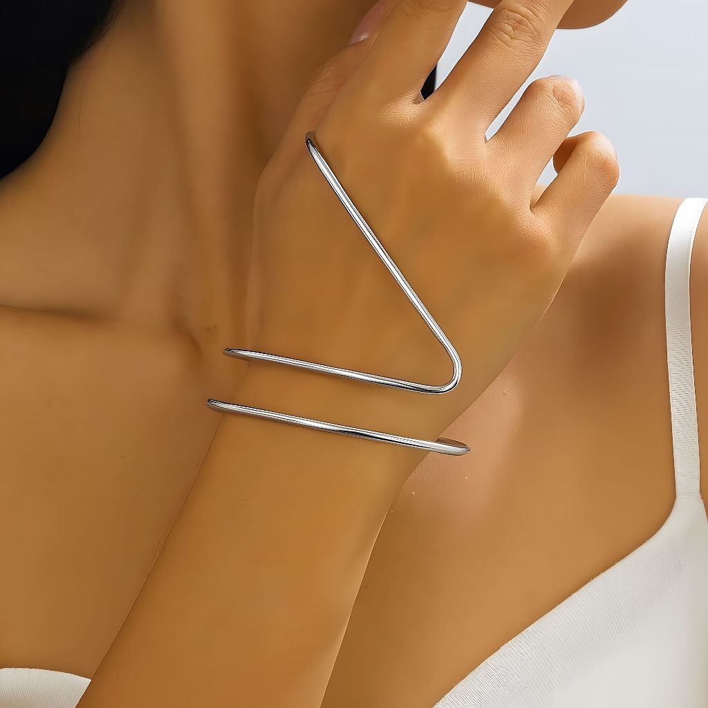 Bracelete Feminino Geométrico Minimalista em Formato de V, Design Moderno Aberto Ajustável, Estilo Elegante e Sofisticad