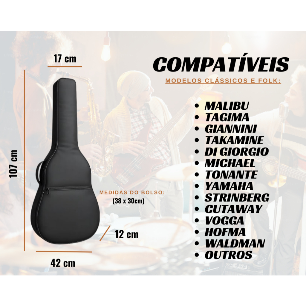 Capa Bag Extra Luxo Acolchoada Espuma Estofada P/ Violão Clássico e Folk