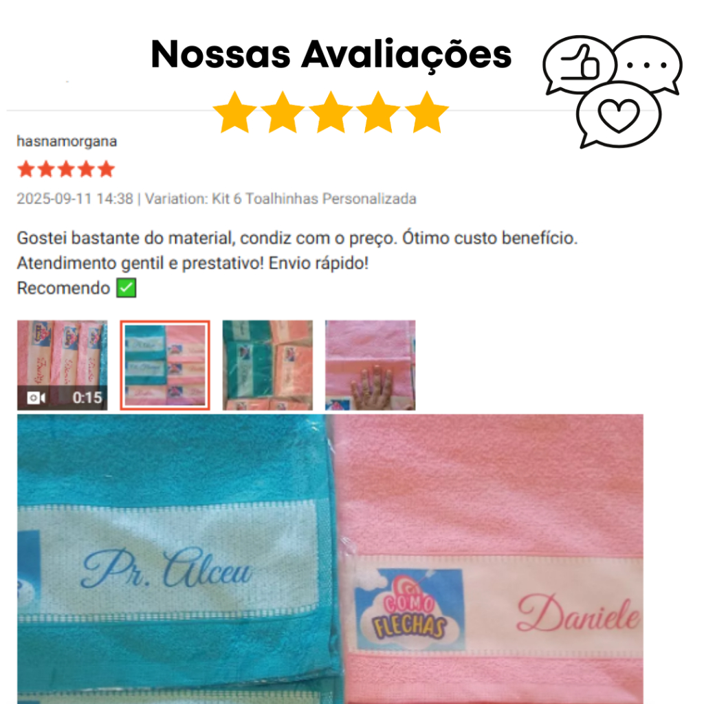 Kit Toalhinhas Personalizadas com Nome Frase Foto ou Logo – Aniversário, Casamento, Igrejas