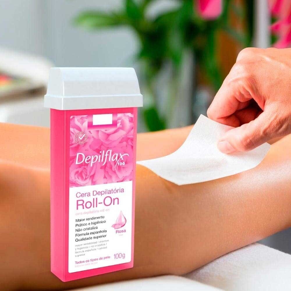 Cera Refil Roll On Depilflax Rosa Kit com 24 Unidades 100g