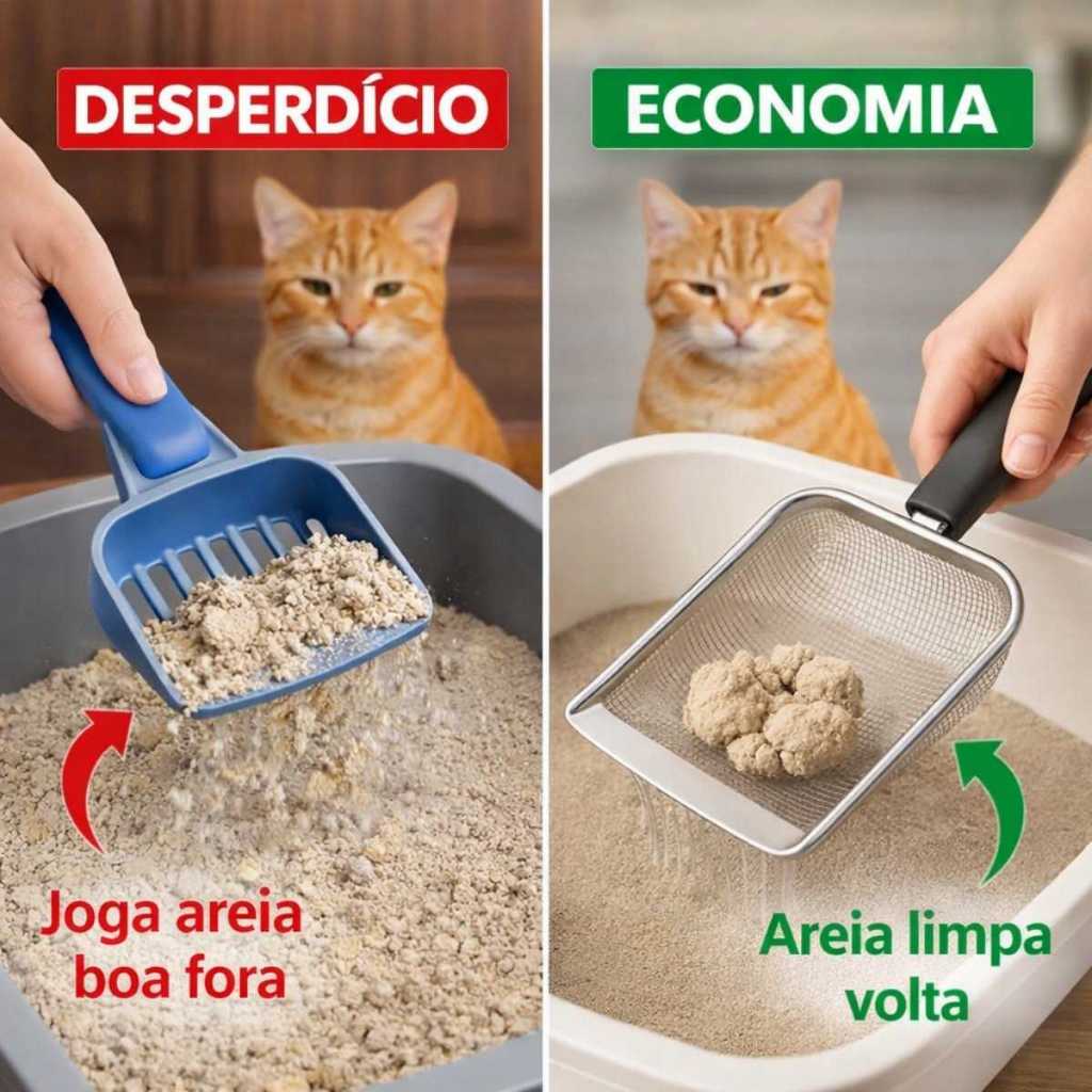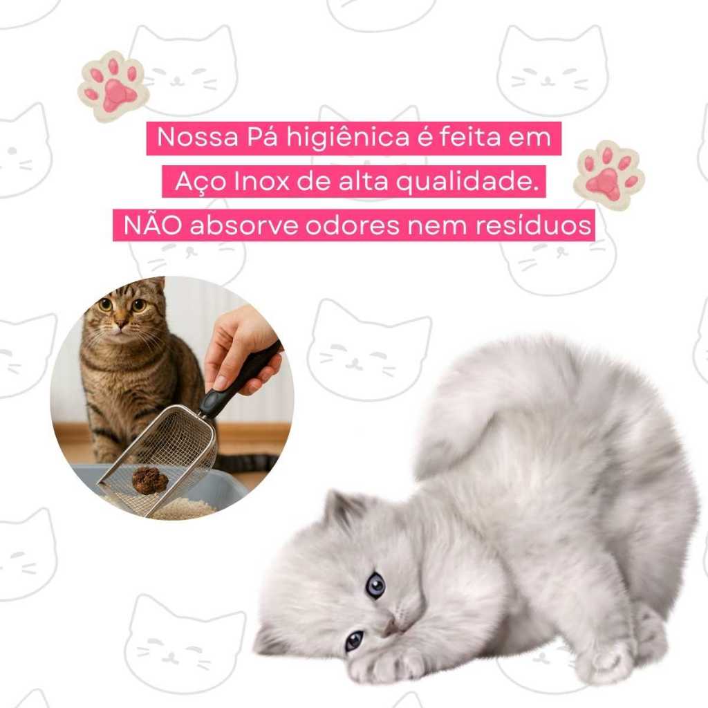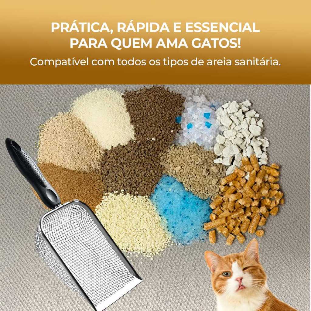 Pá Higiênica Aço Inox para Areia de Gato Malha Fina 2mm, Cabo Ergonômico e Lavável Reutilizável