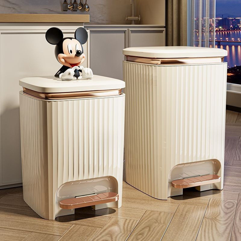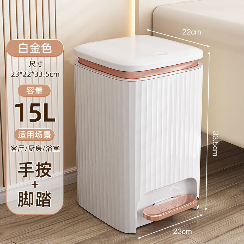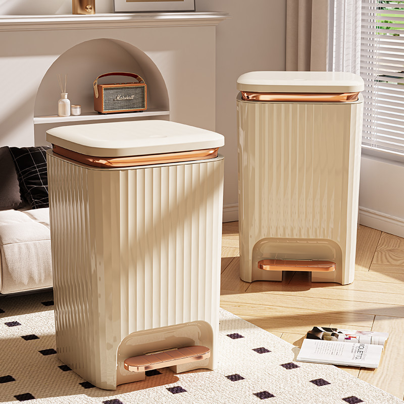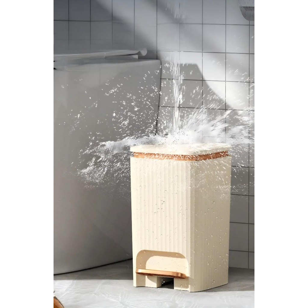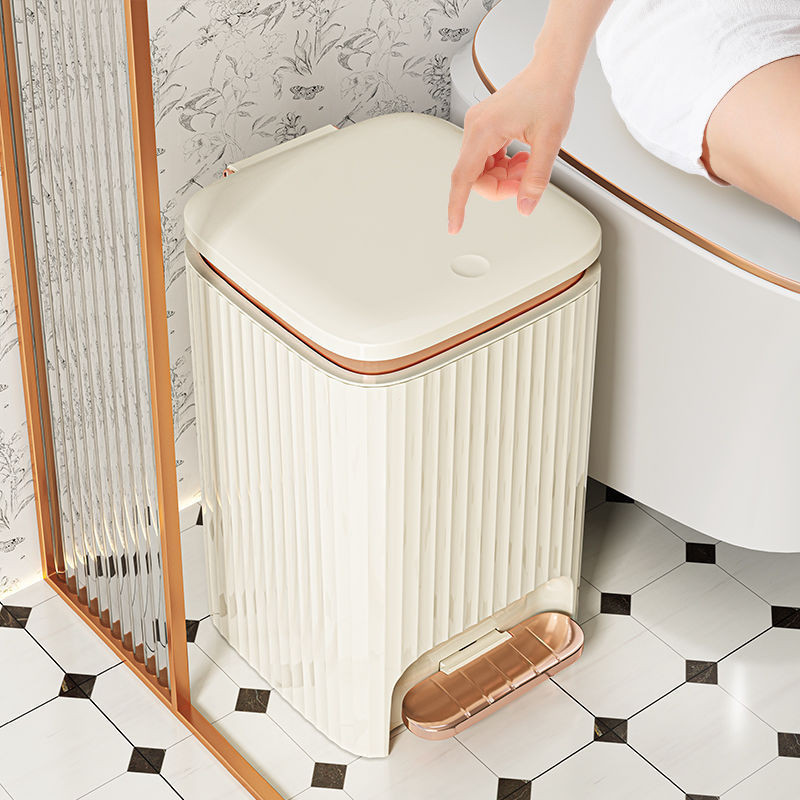 Lixeira Branca com Dourado, Lixeira de Banheiro, Lixeira Inteligente, Lixeira Operada por Pé SQ5O