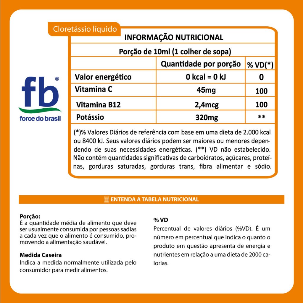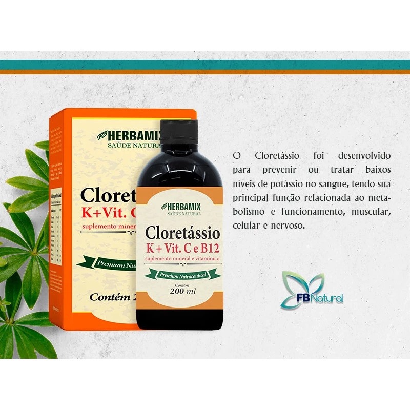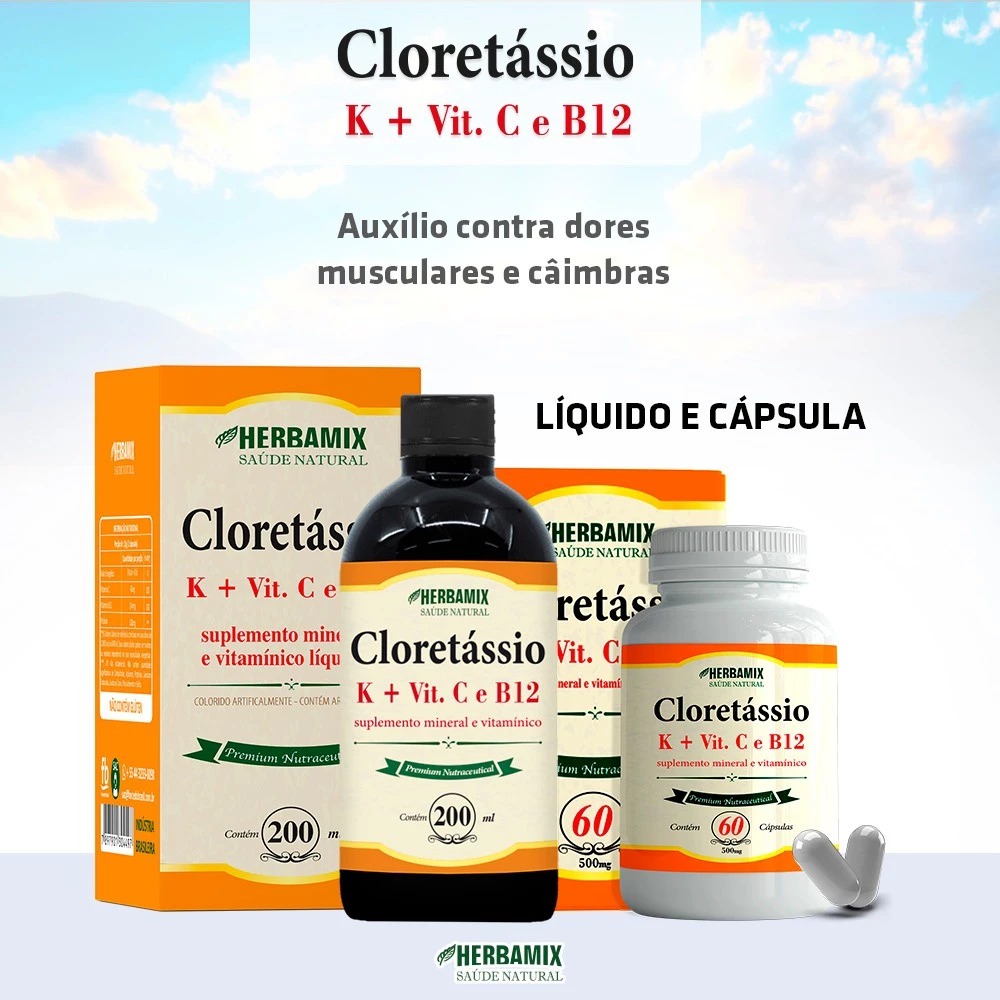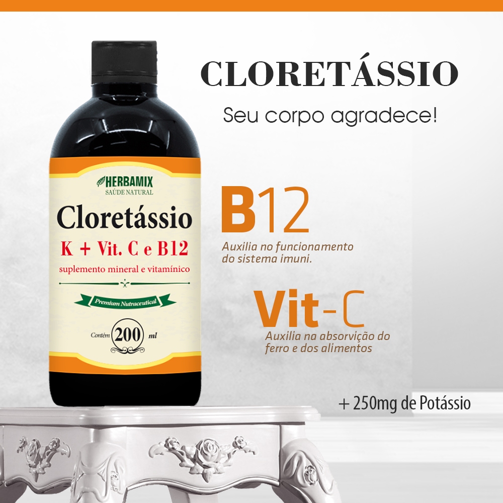 Cloretássio Potássio - Vitaminas C, K e B12 - Anti-câimbras - 200ML