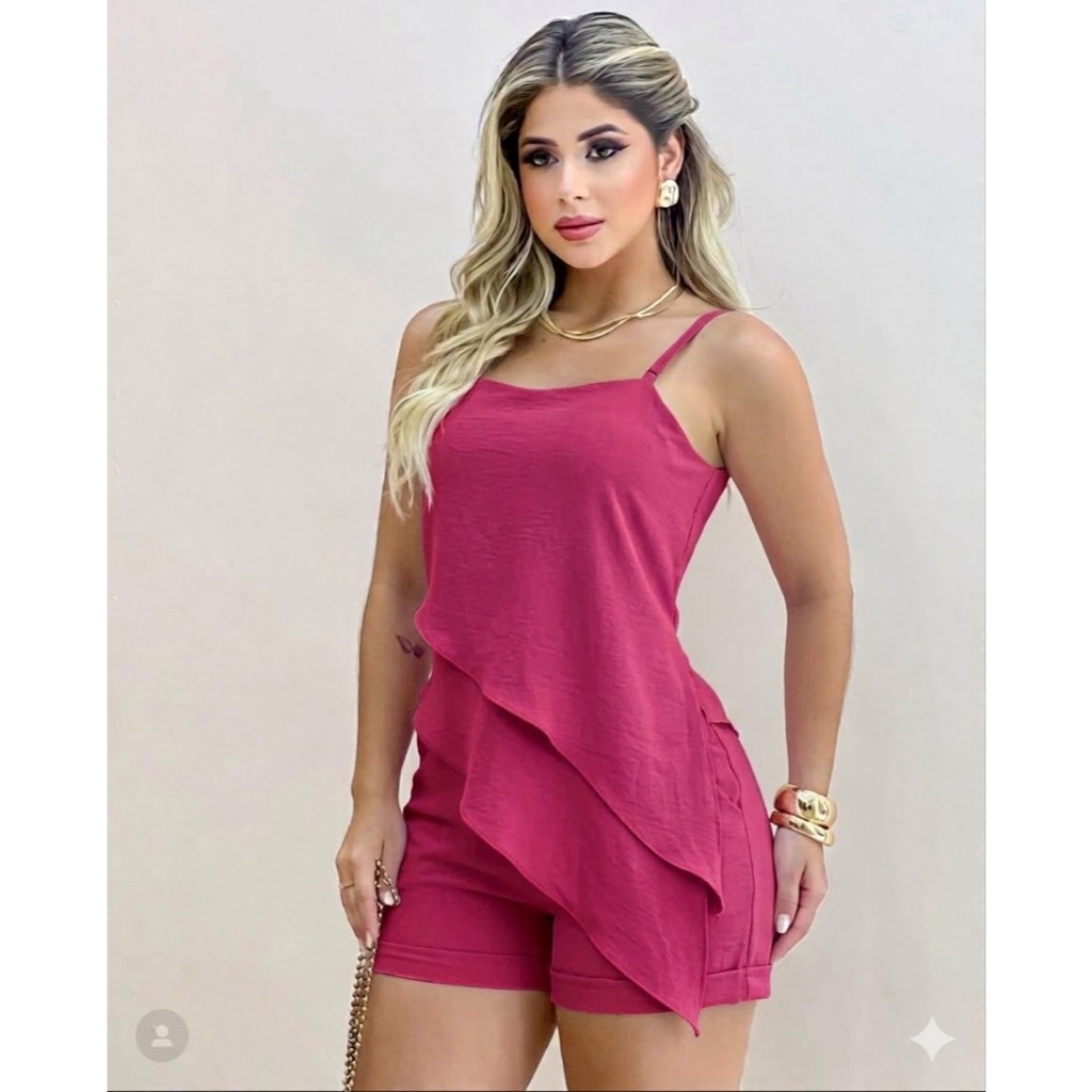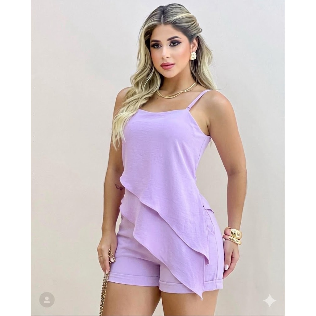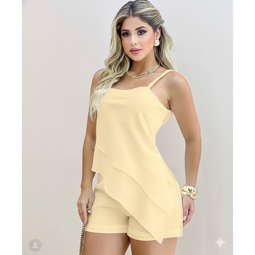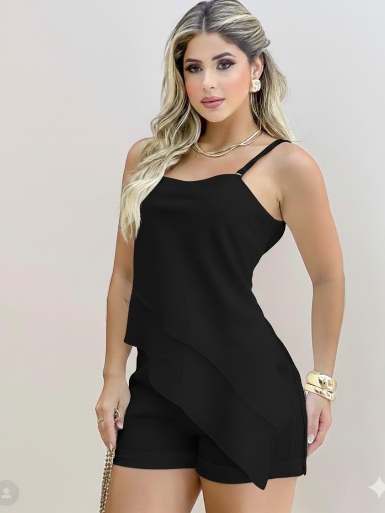 Conjunto feminino Eloiza em alfaitaria,Short e Blusa assimetrica alça regulavél e Confortavél tendência look Moderno