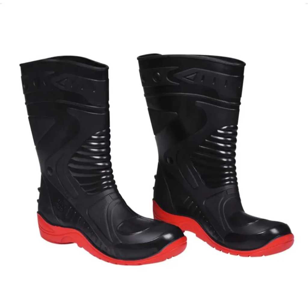 Bota de Chuva Impermeável preto e vermelho Motoboy / Motoqueiro de PVC Reforçada de Alta Performance