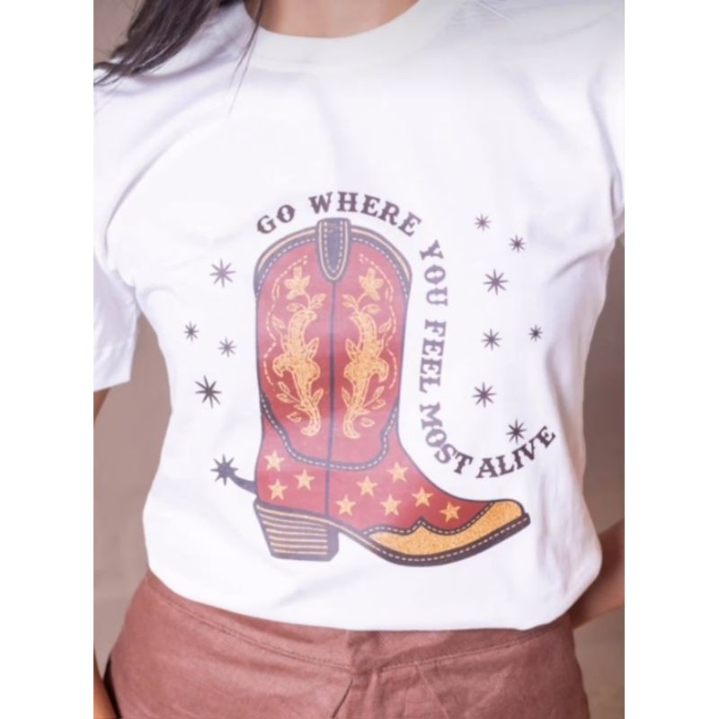 camiseta Feminina Country bota texana algodão