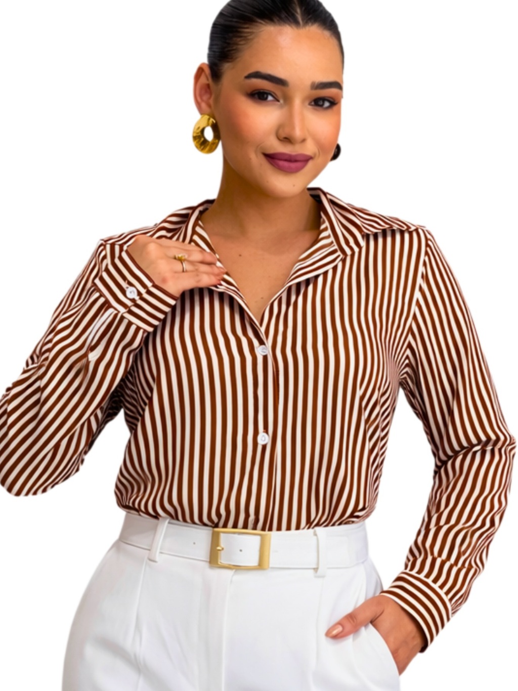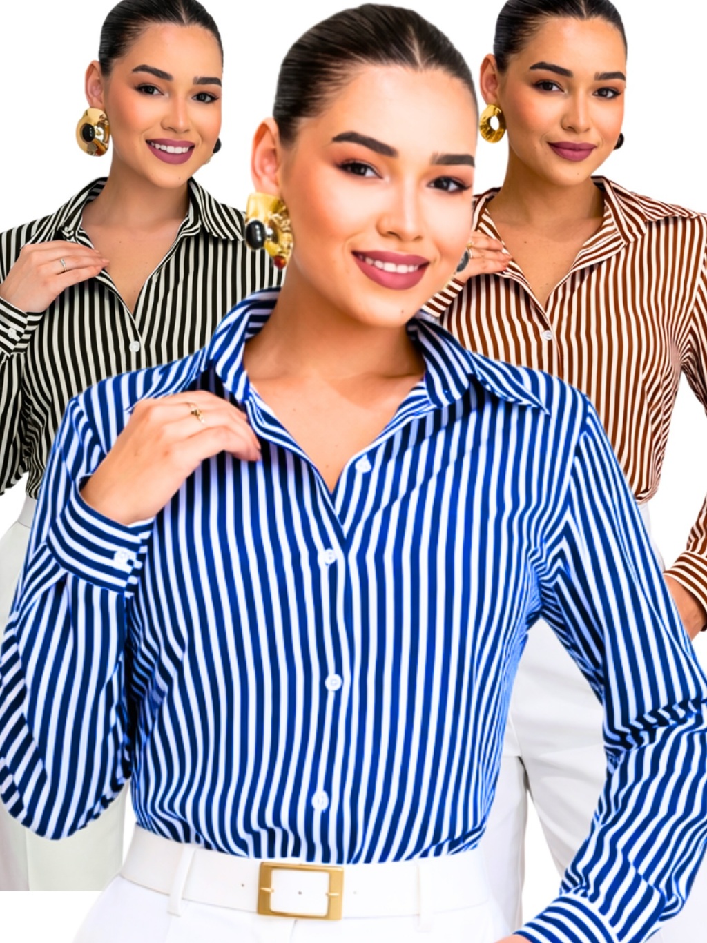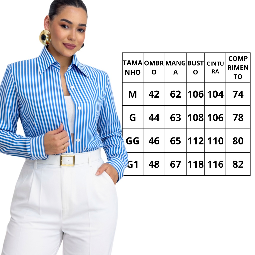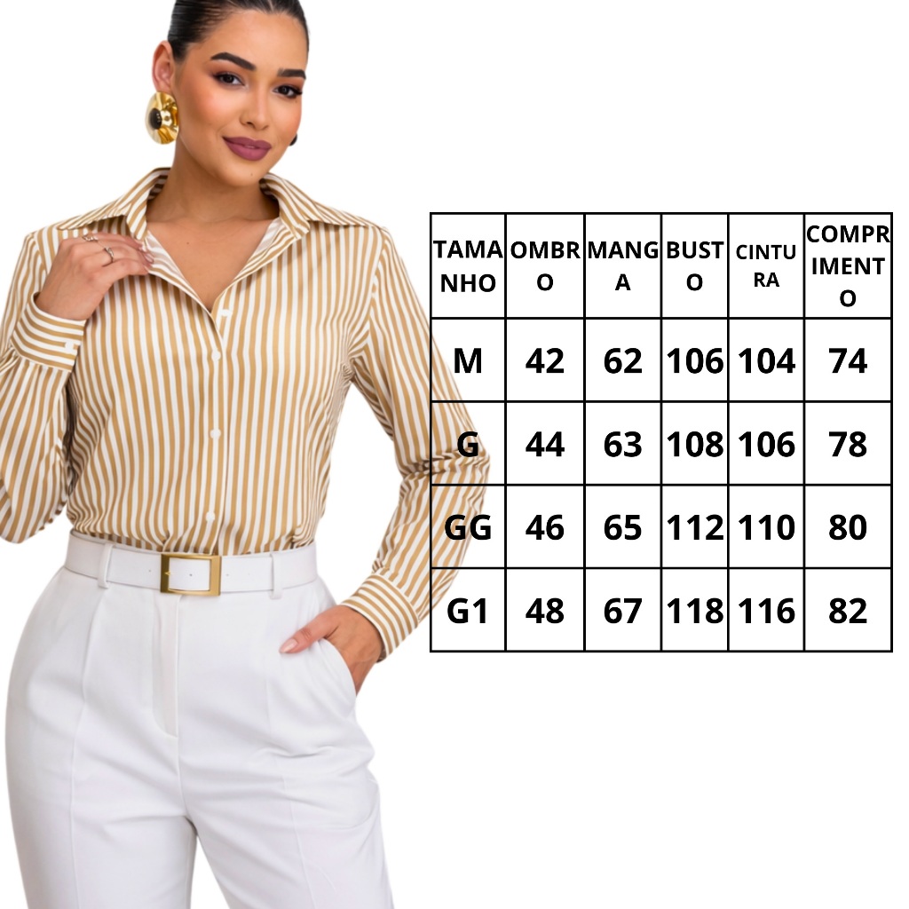 Camisa Listrada Feminina Plus Size Elegante em Crepinho – M ao G1