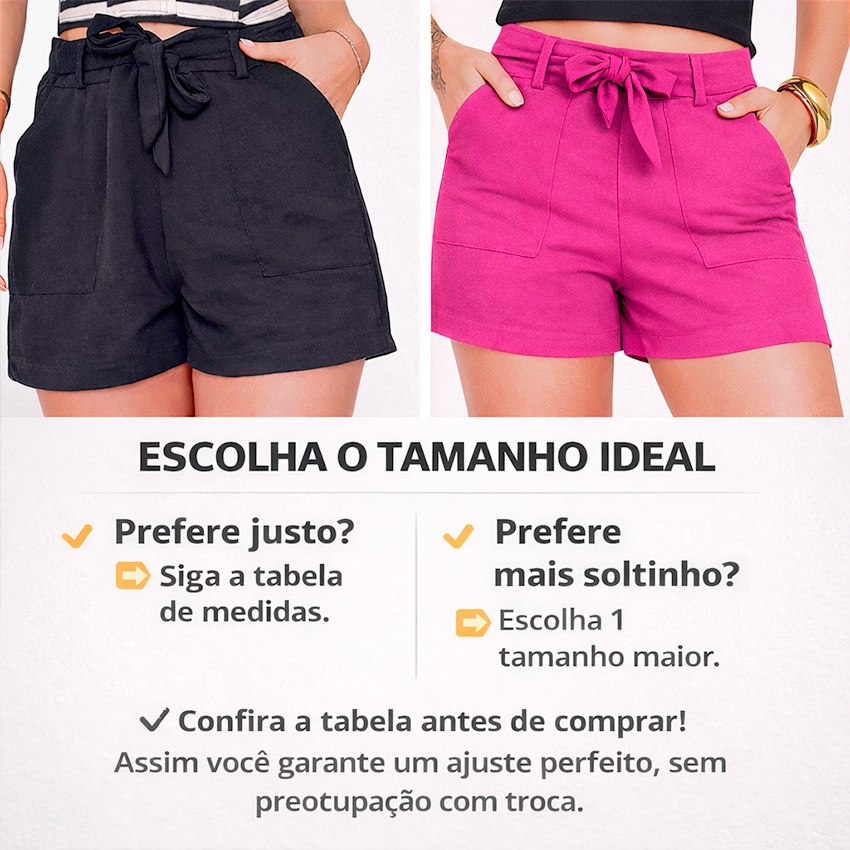 Short Feminino Duna Bermuda Soltinho com Bolso Cintura Alta ELASTICO SO NA COSTA