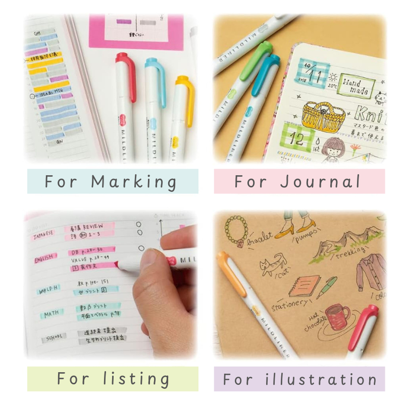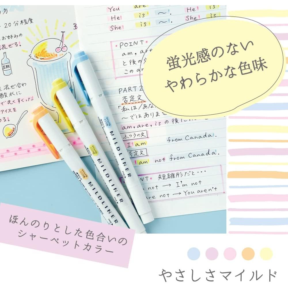 Zebra MILDLINER Caneta Marcadora Dupla Face De Ponta Conjunto De 5 Cores , Papelaria De Diário Japonês