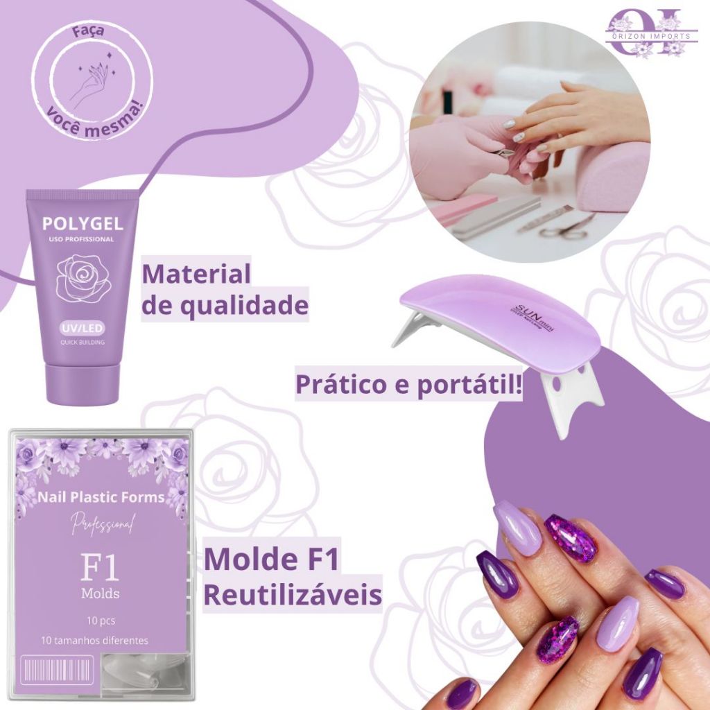 KIT POLYGEL + LIXADEIRA CANETA + CABINE SUN MINI + POLYGEL + MOLDE F1