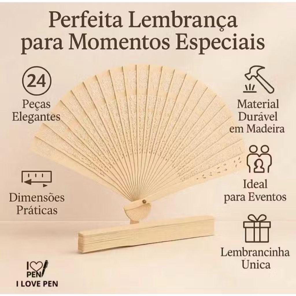 Leque Personalizado para Casamento - Madeira Natural | Pingente Seda