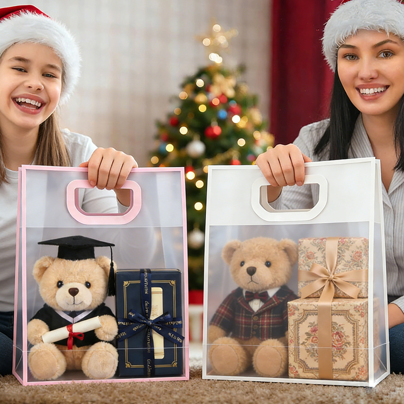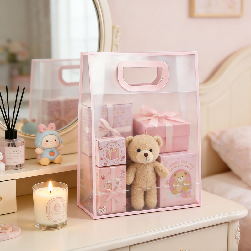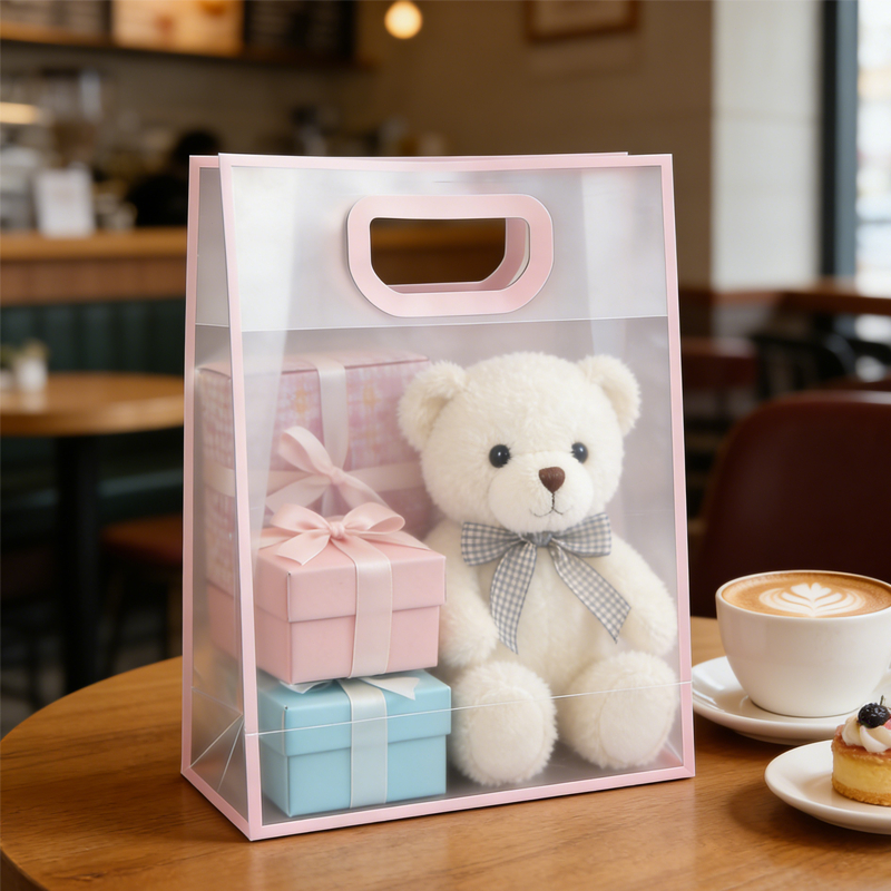 10/20/30 PCS sacola plástica transparente para presente de aniversário, casamento, doces, sacola de compras ecológica