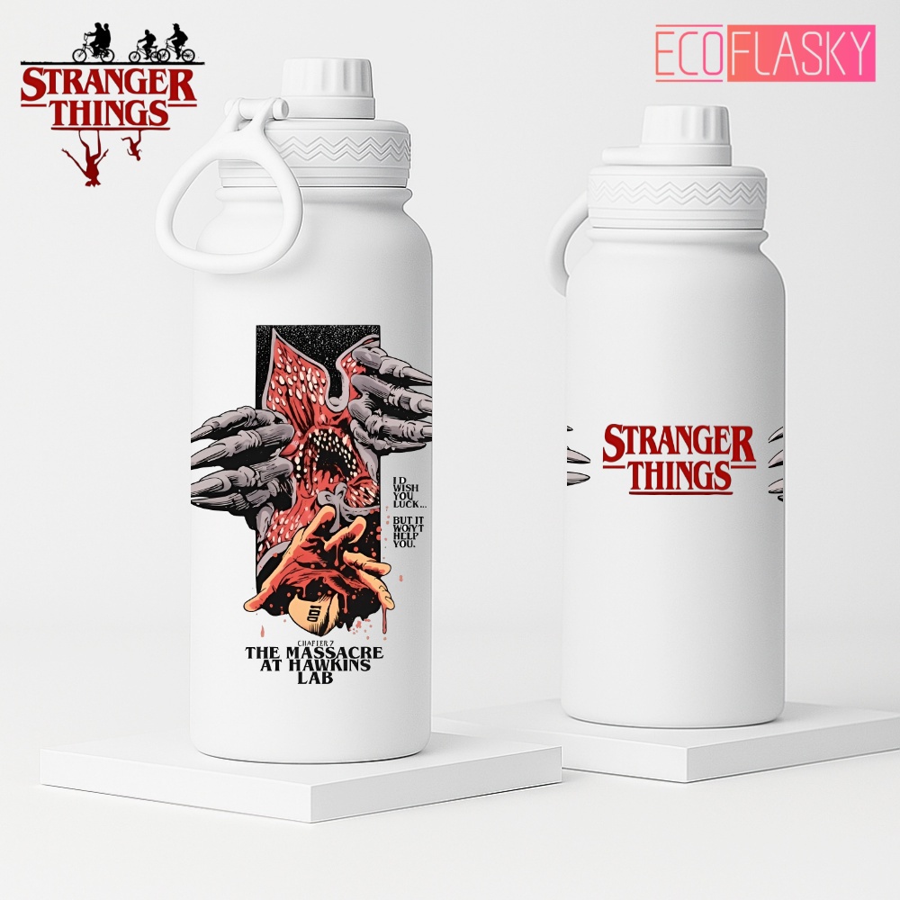 Garrafa Térmica Aço Inoxidável Stranger Things Netflix Com Alça Portátil Esportiva 600ml 800ml