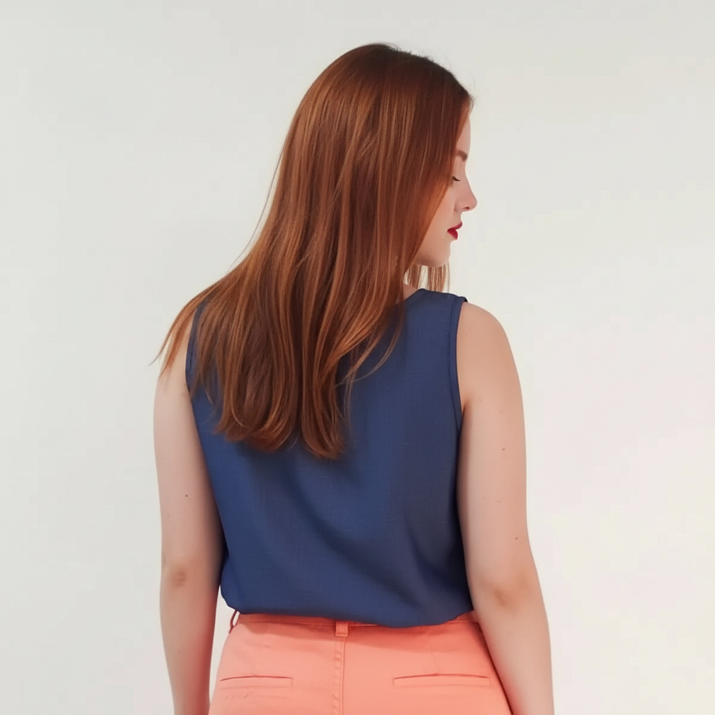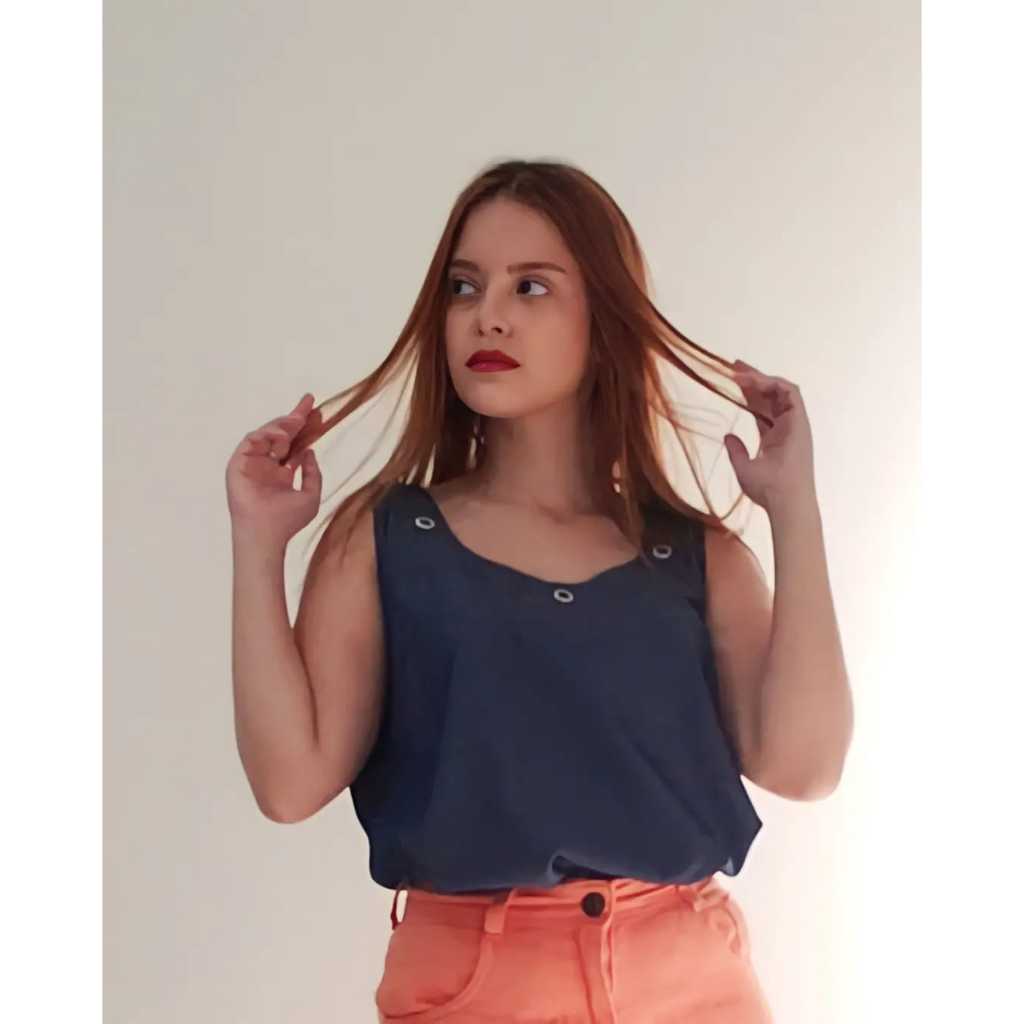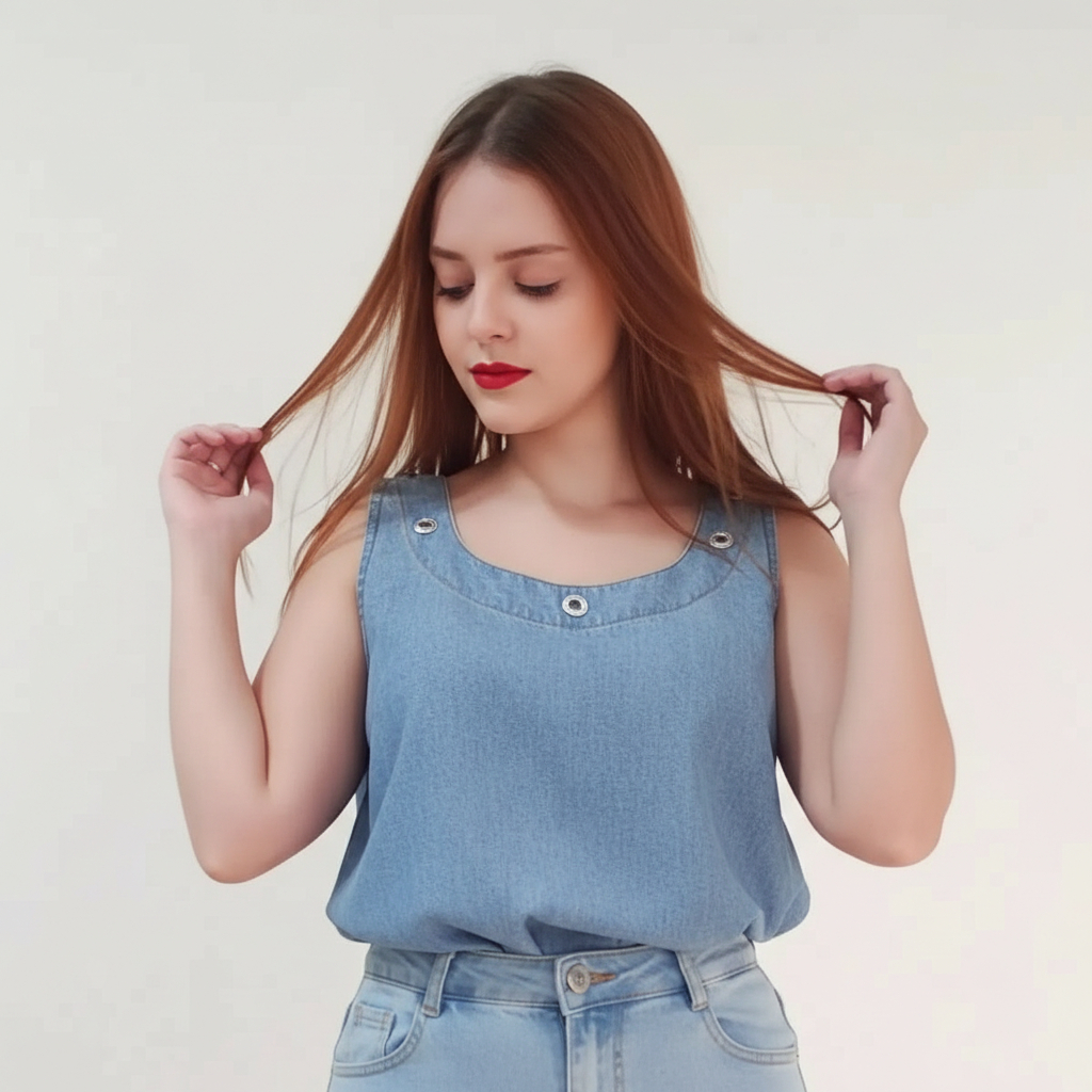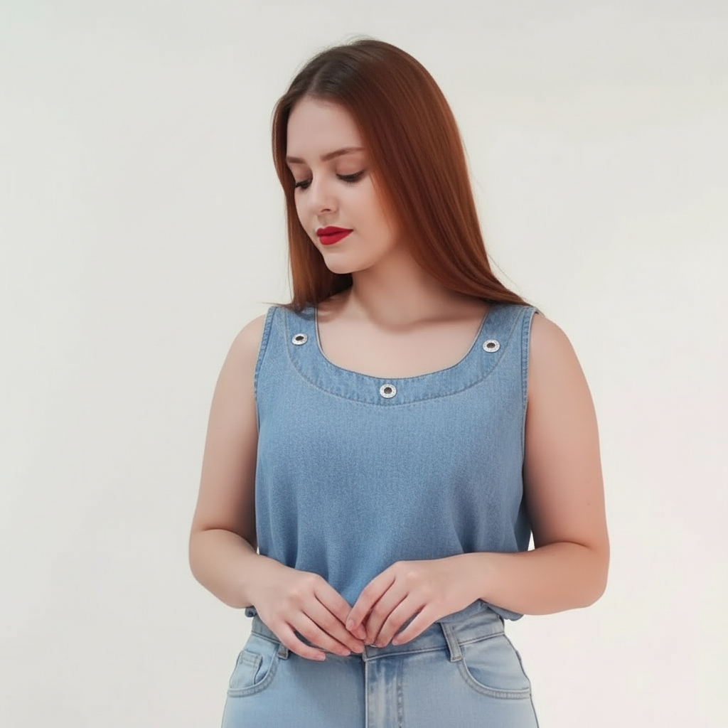 Regata Feminina Jeans Tencel Com Botoes na Gola Cores Lisas Escura & Claro