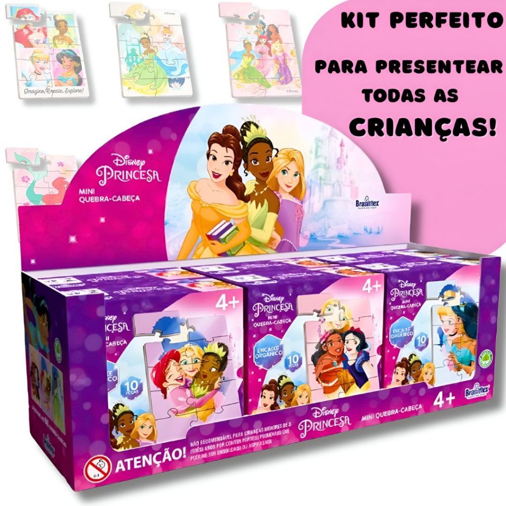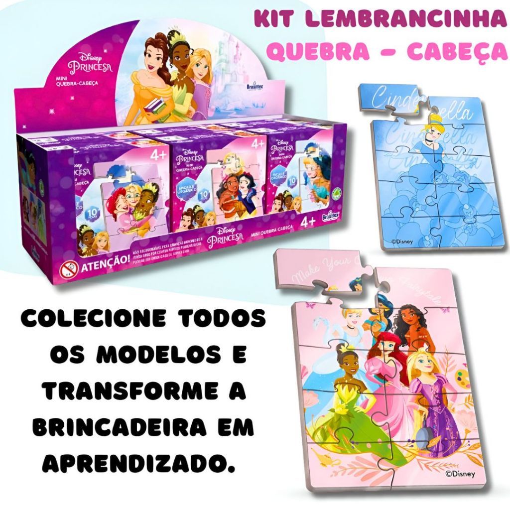 Kit com 6/12/24 Jogos Quebra Cabeça Lembrancinha infantil Princesas Disney 10 Peças Original