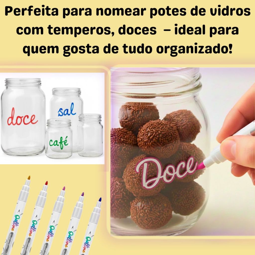 Caneta Marcadora Para Potes De Vidro Escrita Etiqueta Para Temperos Mantimentos Geleias Iogurtes Reutilizável E Lavável