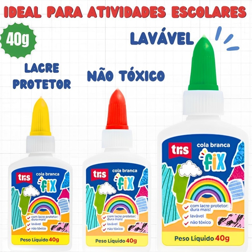 Kit 6/12 Cola Líquida Branca Escolar 40g Cola Branca Lavável Para Escola