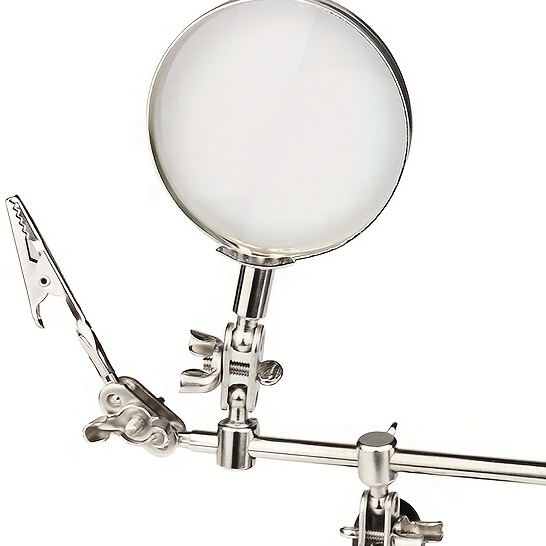 Lupa de mesa, ampliação de 10x, com suporte, luz LED, lente e clipe de solda.