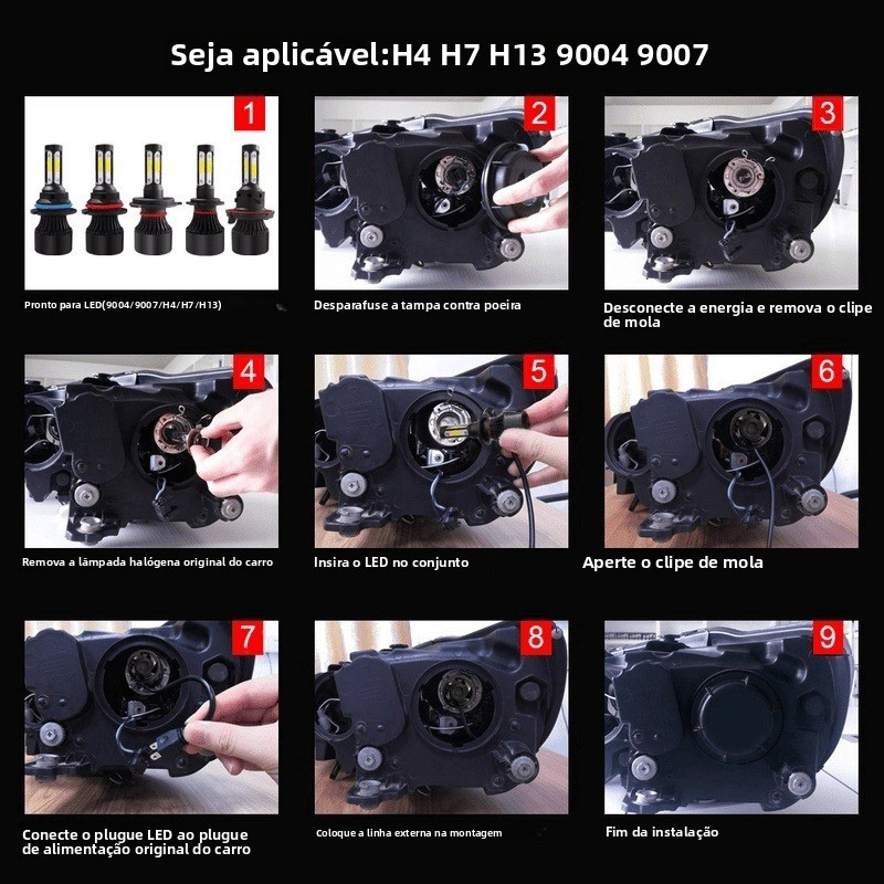 2 Pçs Novo 4 Lados 18000LM H4 H7 Faróis LED Do Carro H8 H11 9005 HB3 9006 HB4 Farol Kit Luzes Lâmpadas Para Automóvel