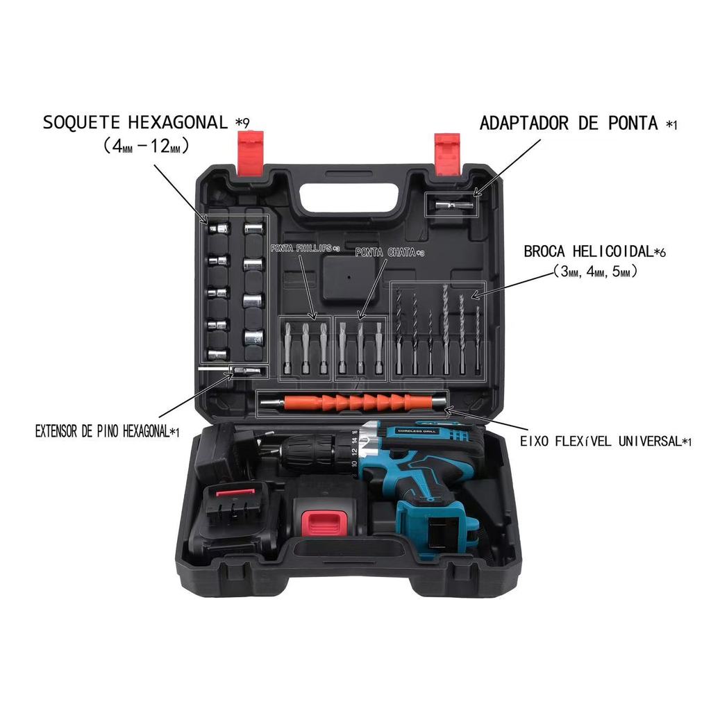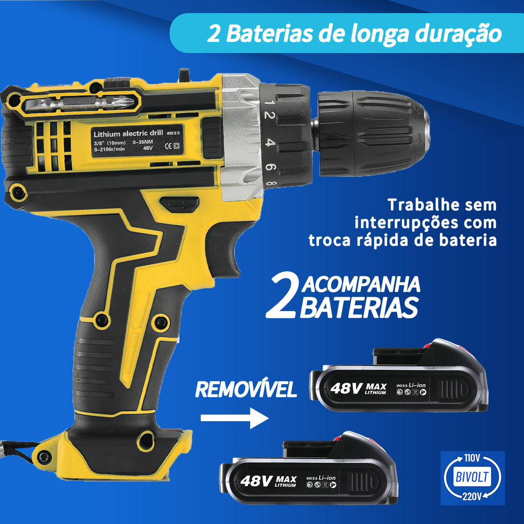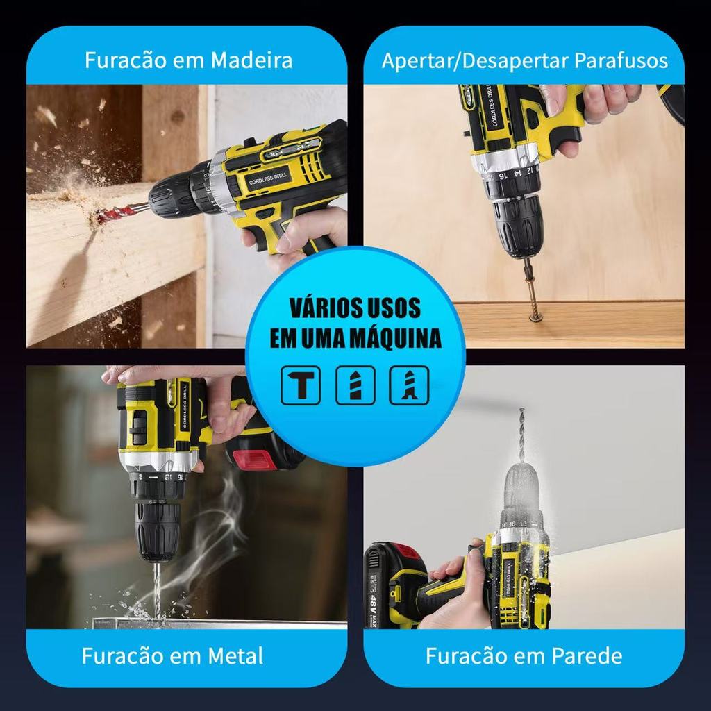 Furadeira/Driver De Impacto 48V , Tensão Dupla-2 Baterias Recarregáveis + Maleta De Transporte | Uso Doméstico/Profissio